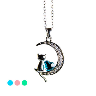 گردنبند پینترستی گربه در ماه با نگین قلبی رنگی