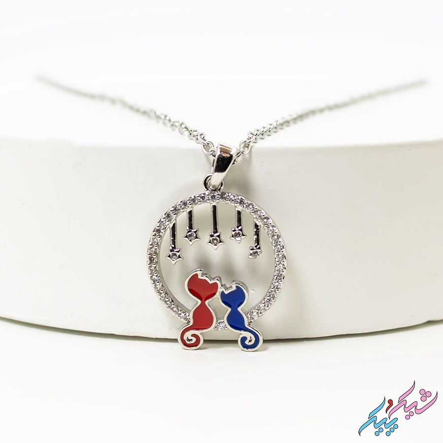 گردنبند فانتزی طرح «گربههای عاشق»؛ با میناکاری رنگی و ستارههای درخشان