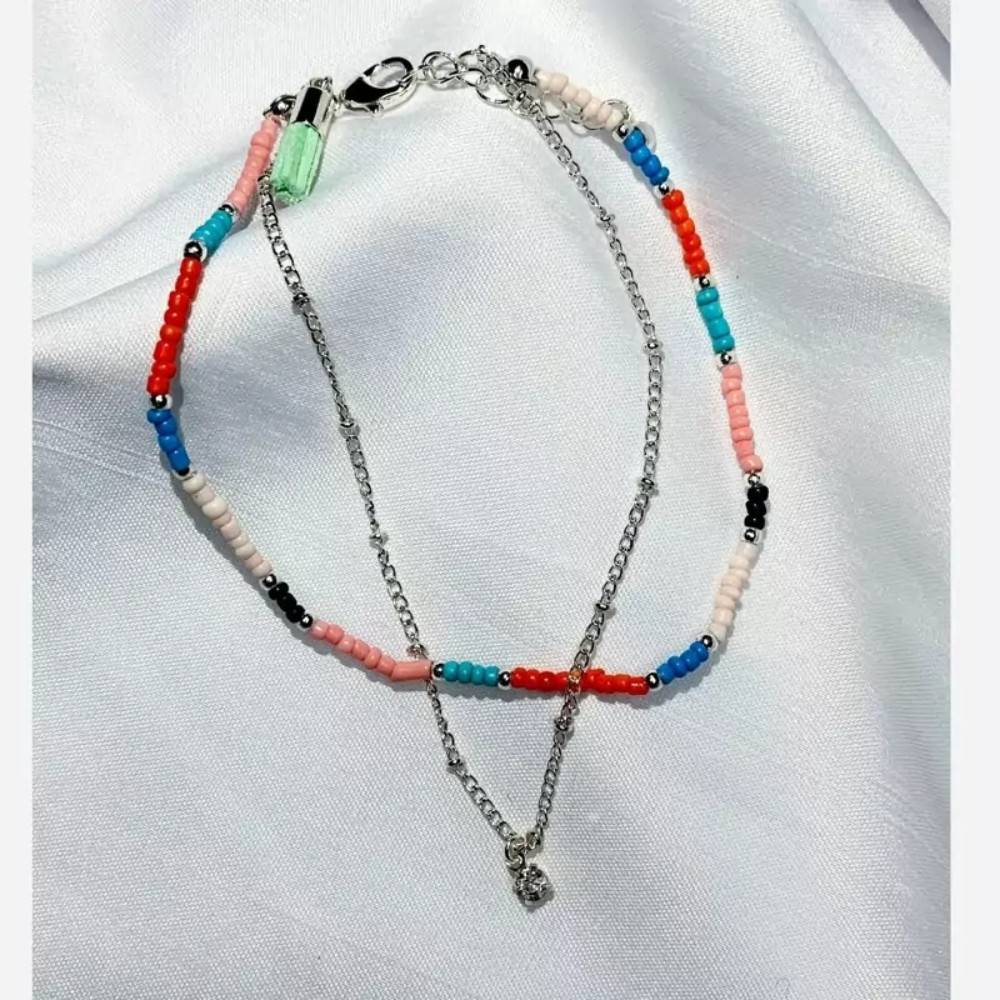 طراحی دو خطی با مرواریدهای رنگی و زنجیر