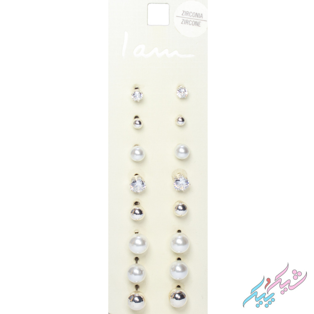 🧁 ۳ جفت مرواریدی سفید + ۳ جفت نقرهای