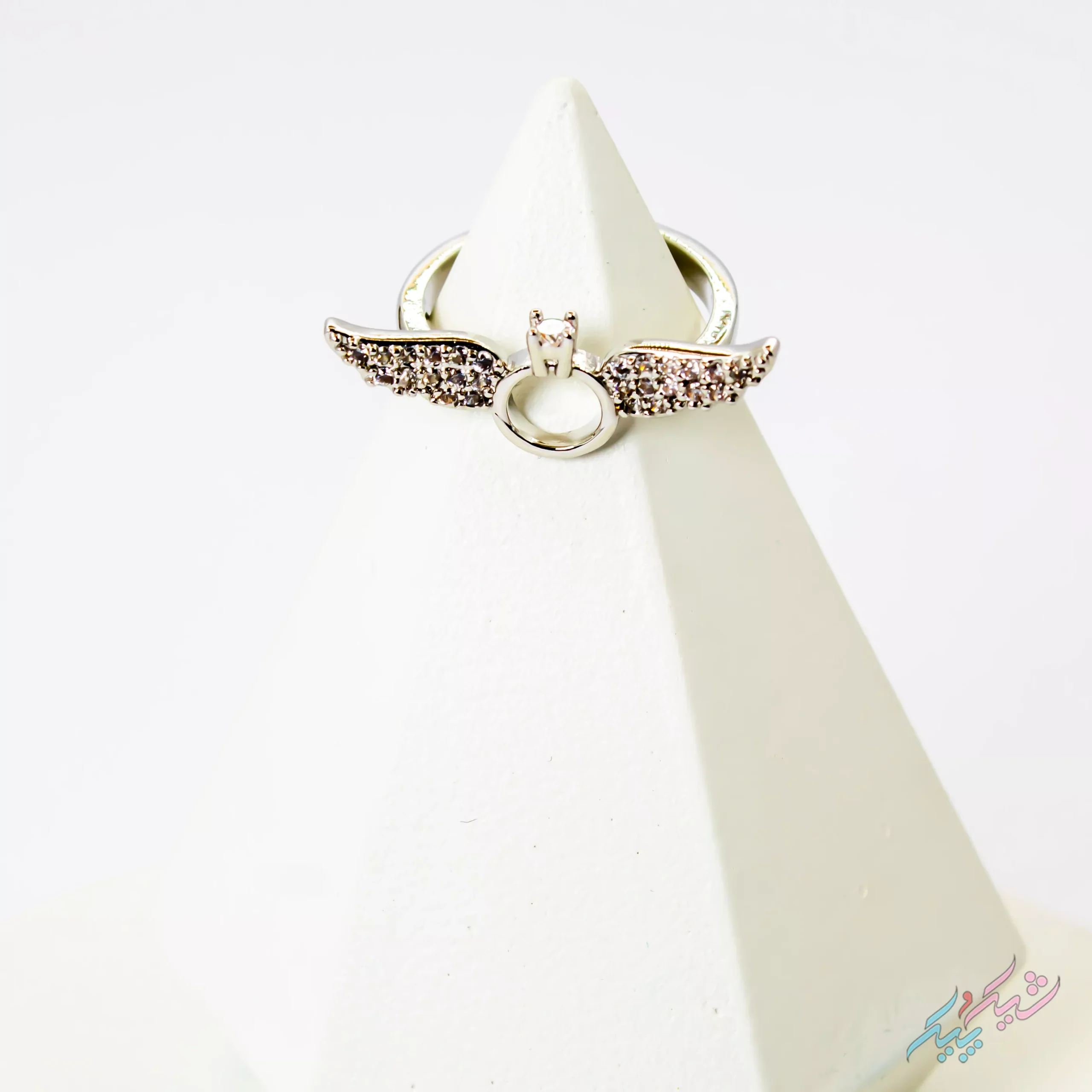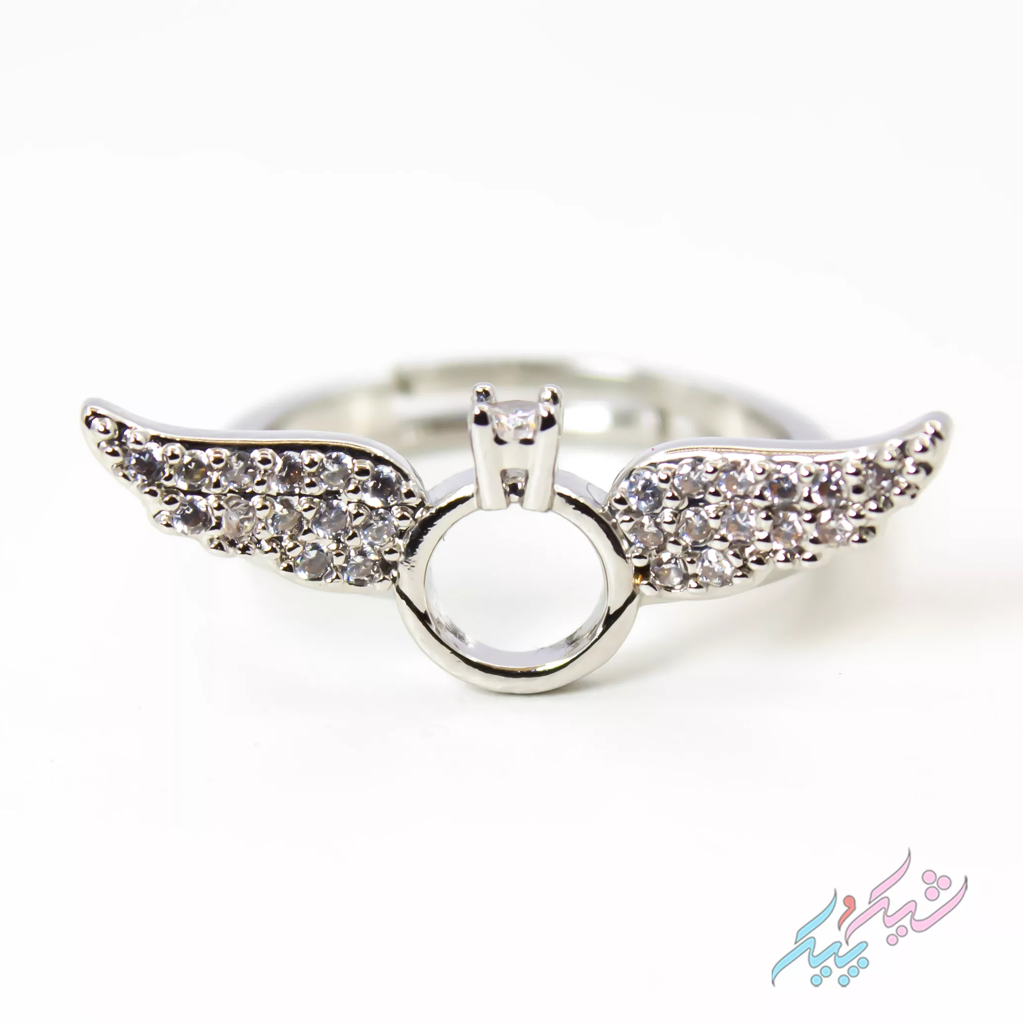 انگشتر فری سایز با طراحی بالهای فرشته و سنگهای درخشان