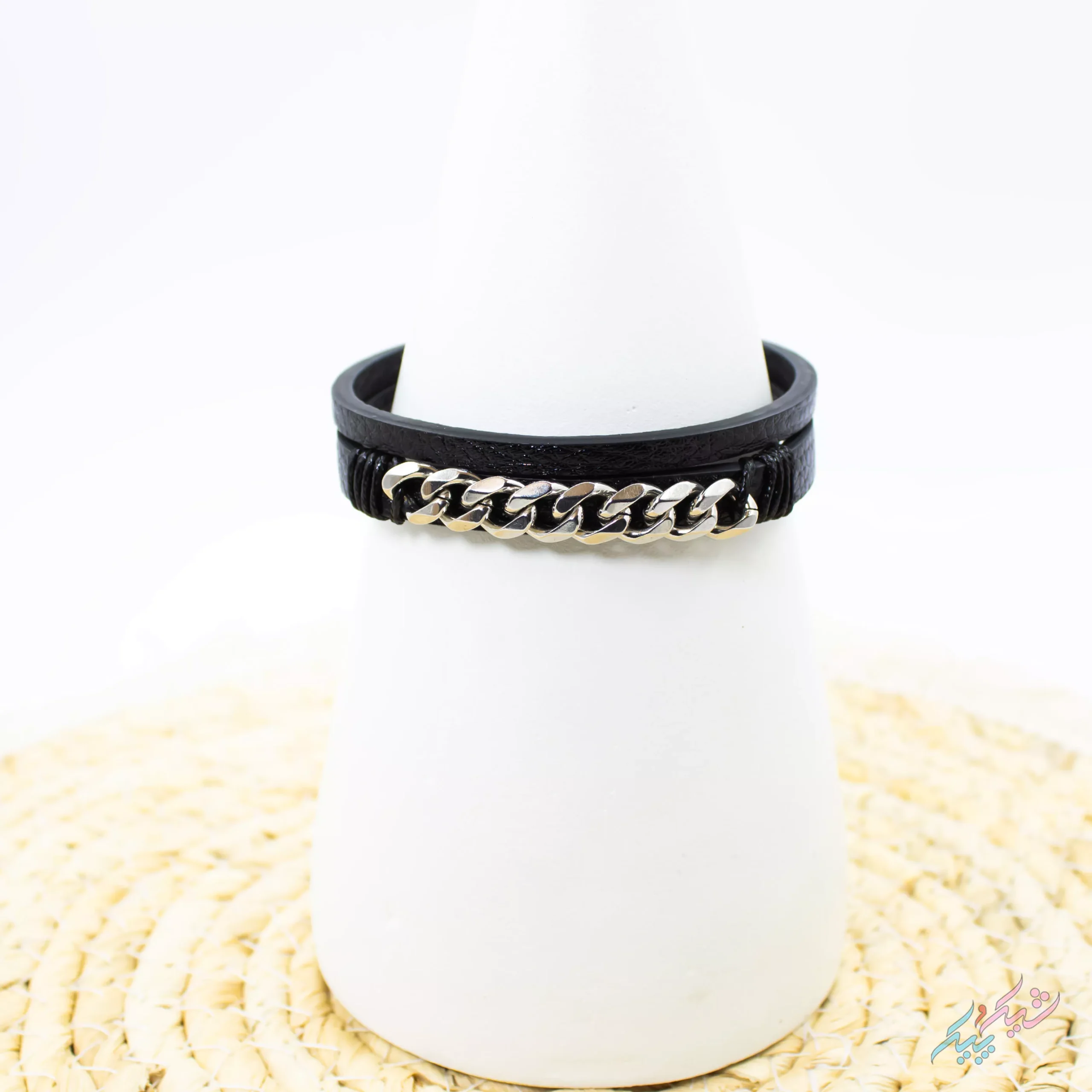 - دستبند چرمی زنجیردار دو لایه (چرم و زنجیر) ⚫