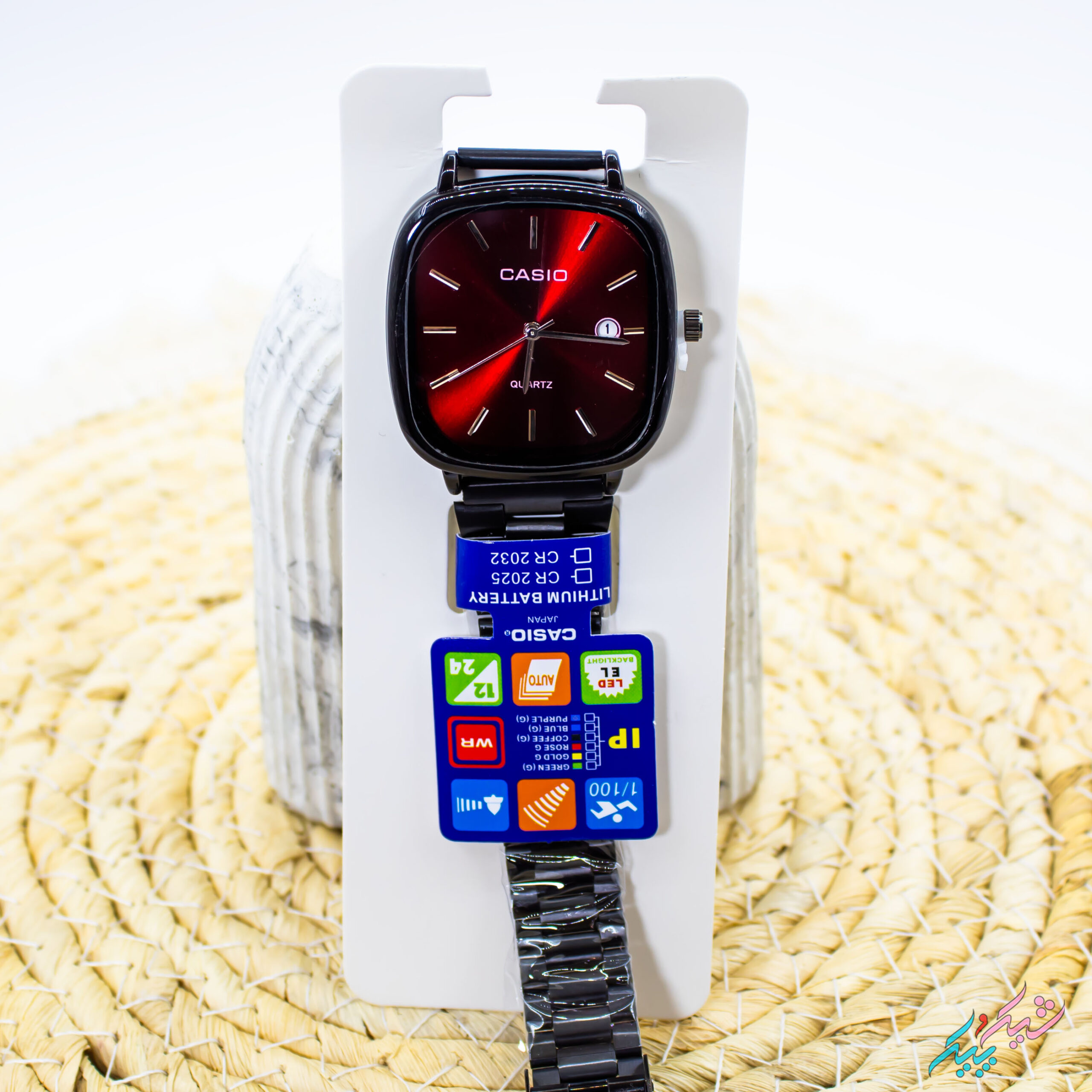 ساعت مچی زنانه و مردانه کاسیو طرح اولد مانی صفحه قرمز با تقویم فعال