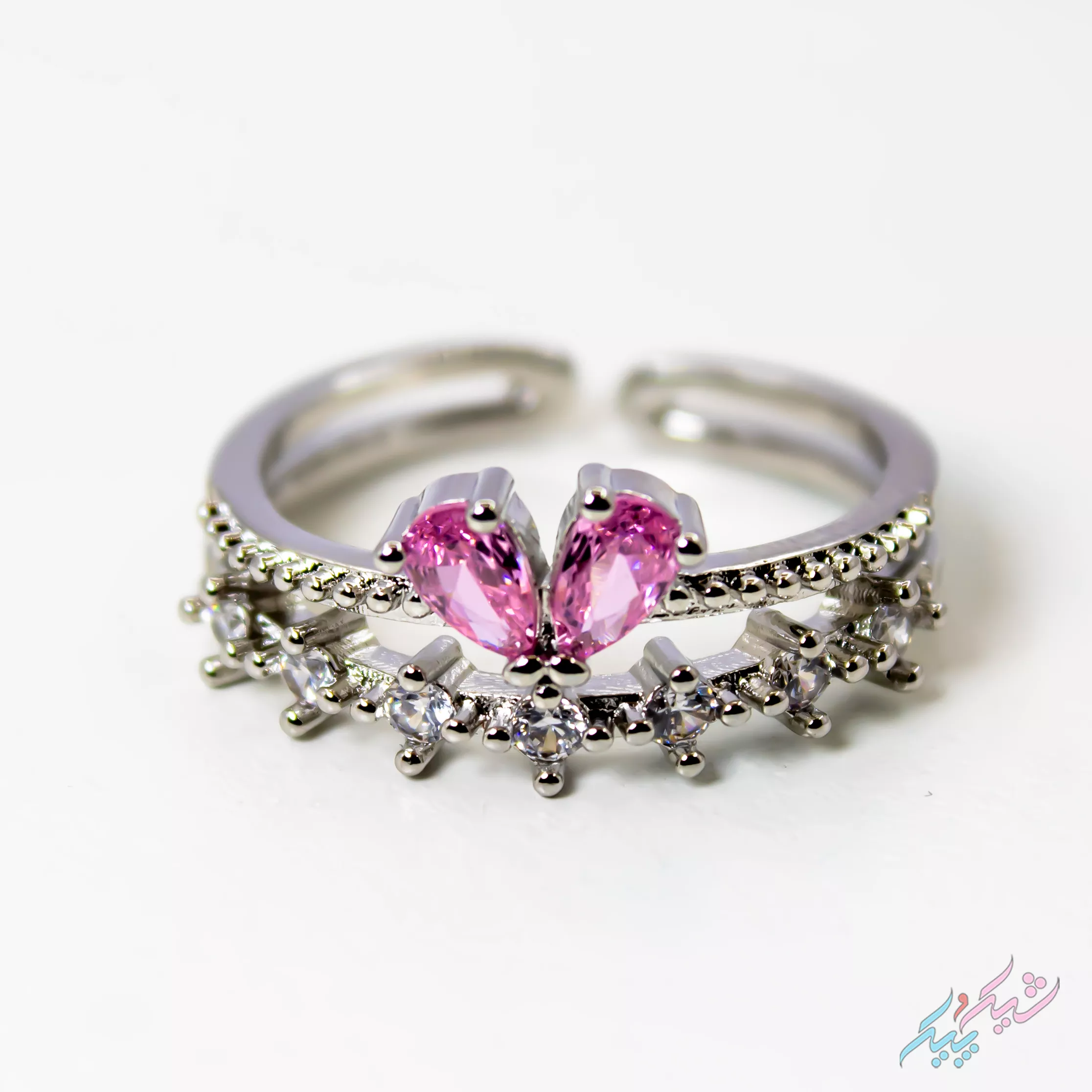 💠 انگشتر بدل تاج الماسی با نگین صورتی: انتخابی لوکس و درخشان برای دستان شما