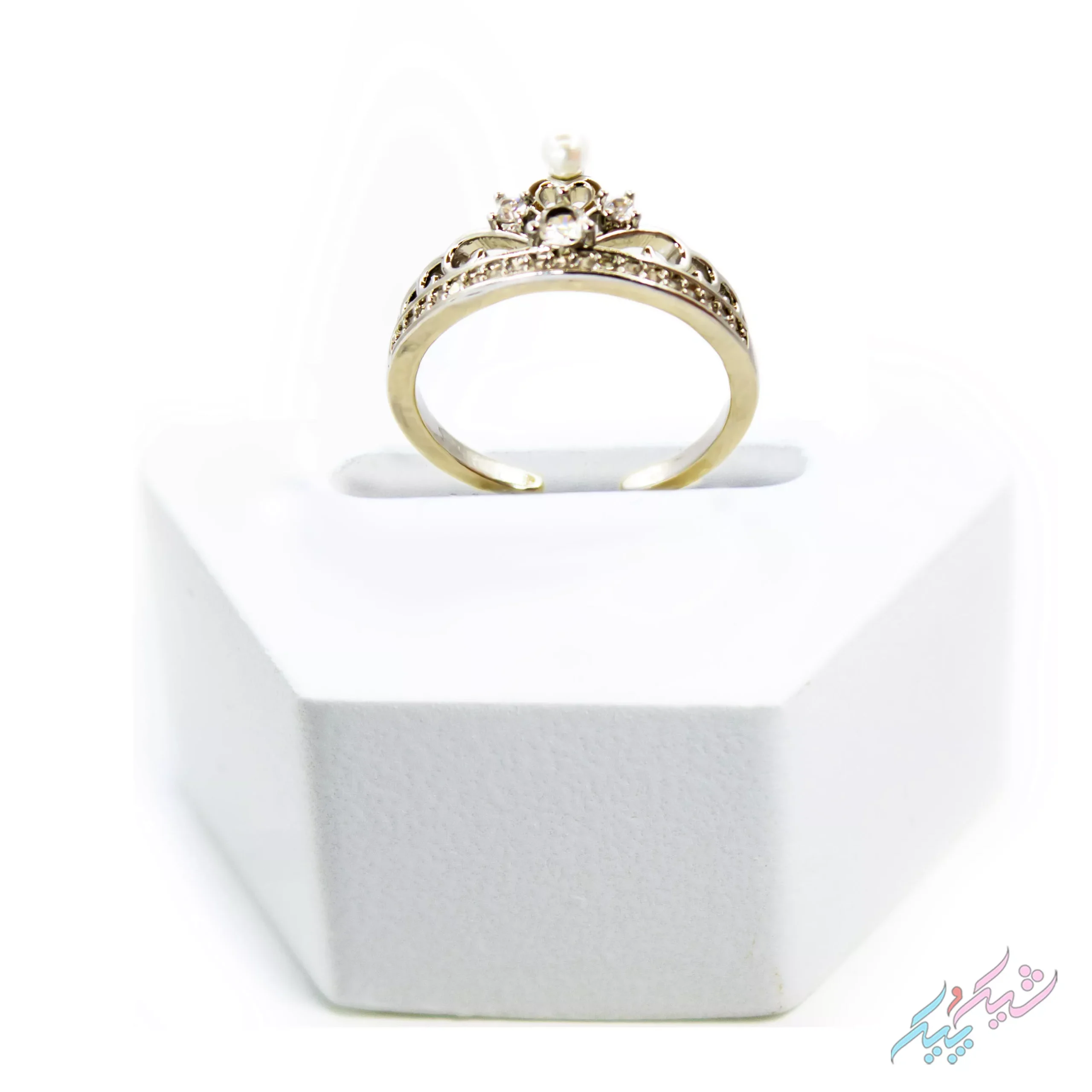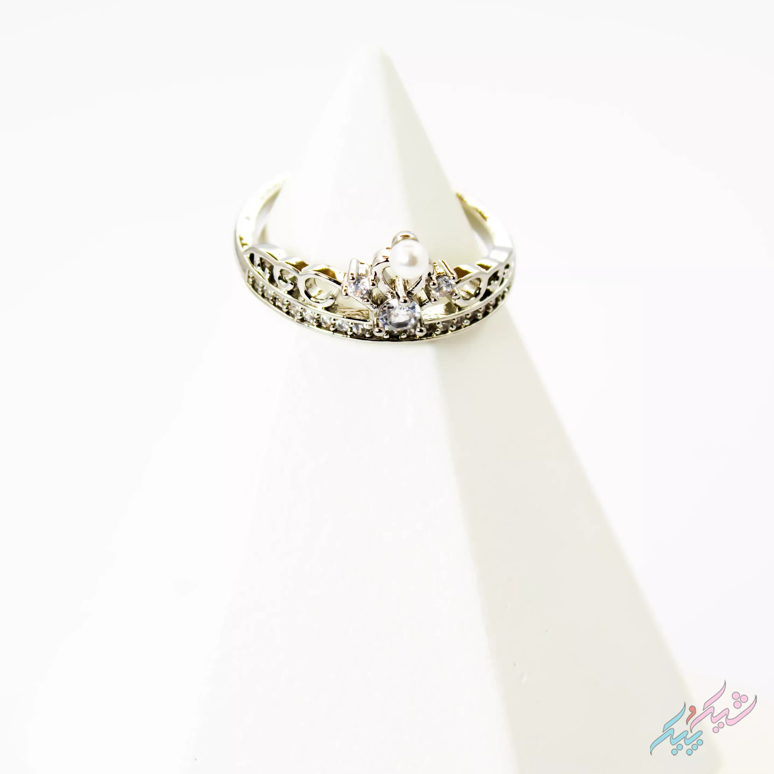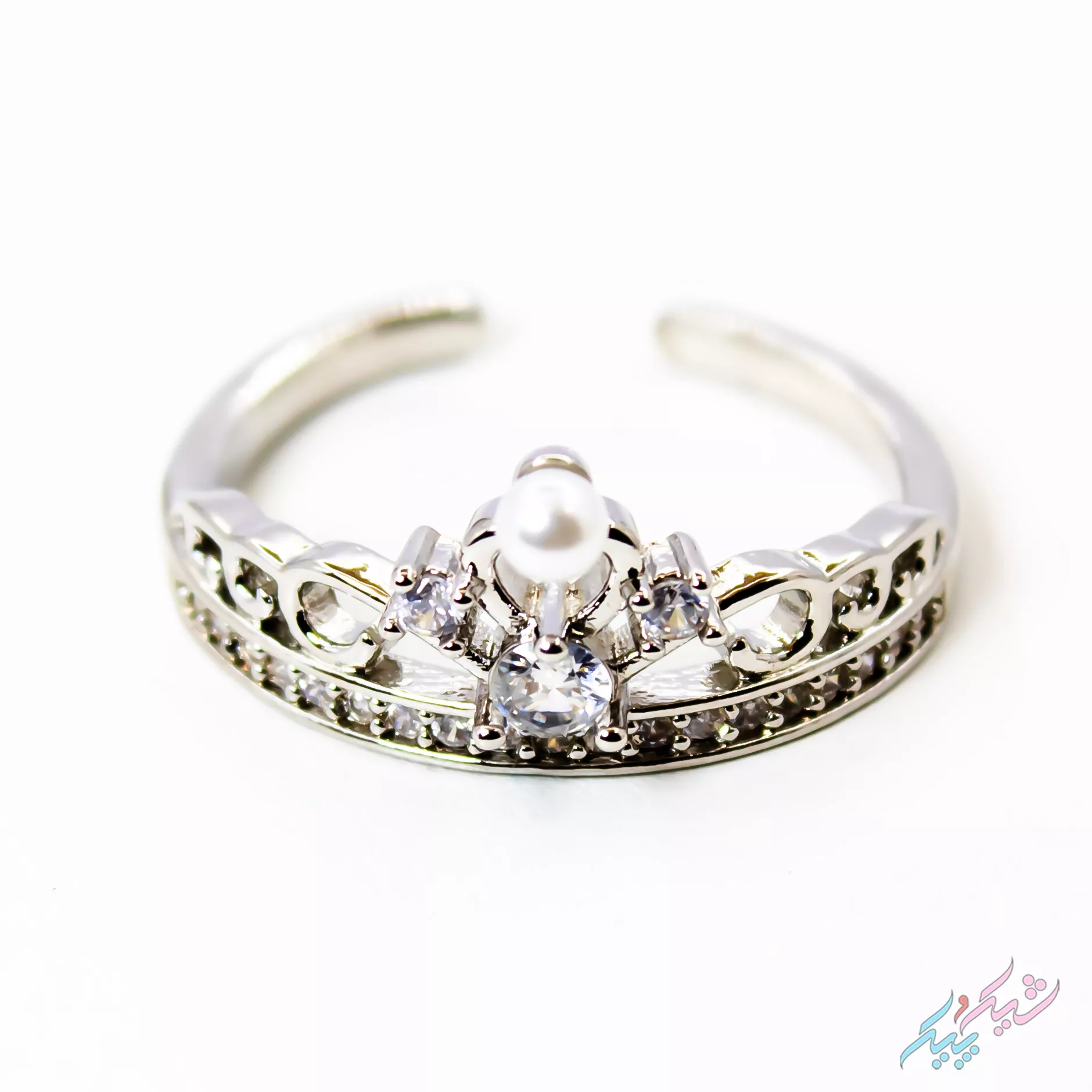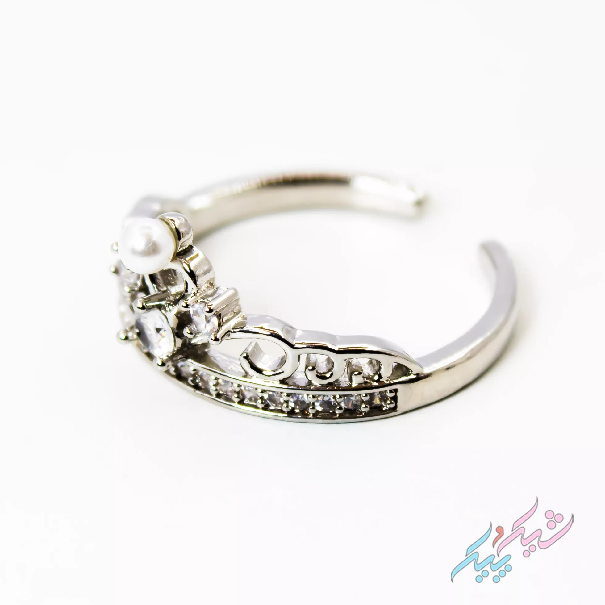 انگشتر مدل تاج با مروارید سفید و فری سایز: نماد سلطنت و زیبایی