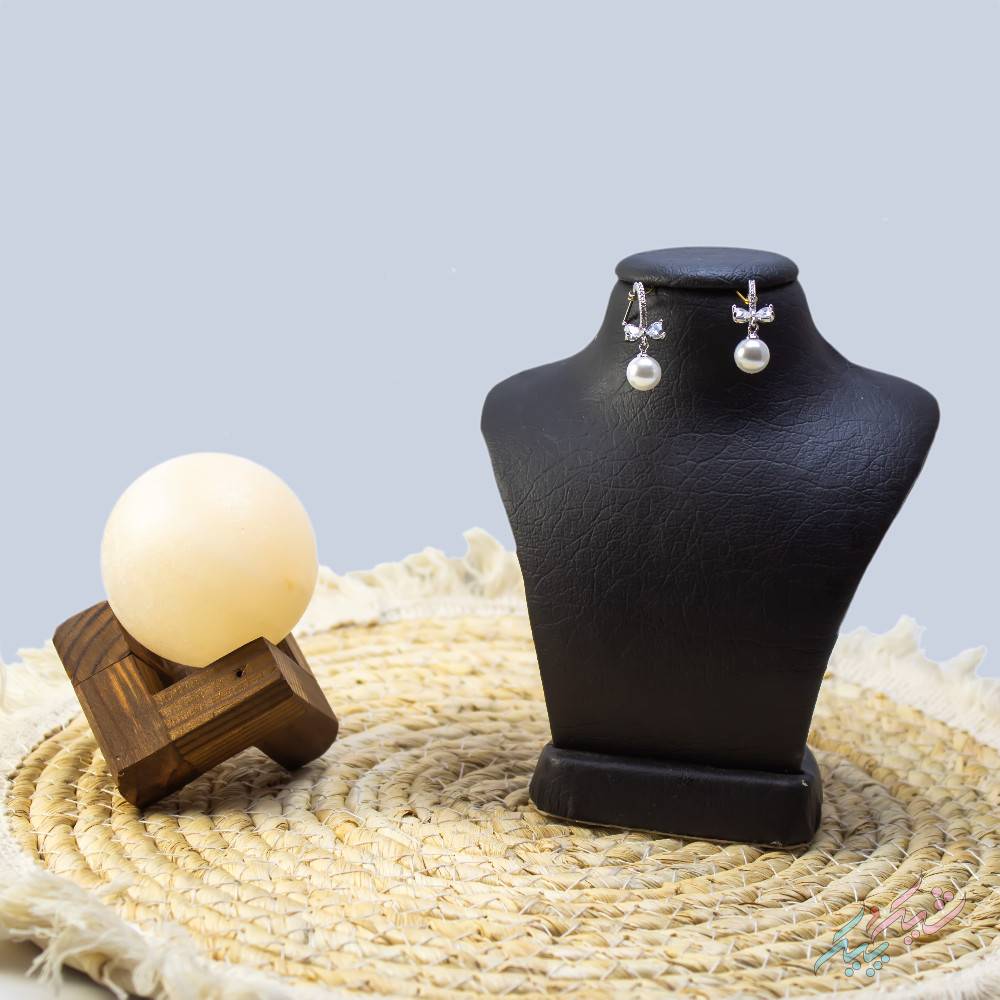 گوشواره فول نگین با آویز مرواریدی تیتانیوم
