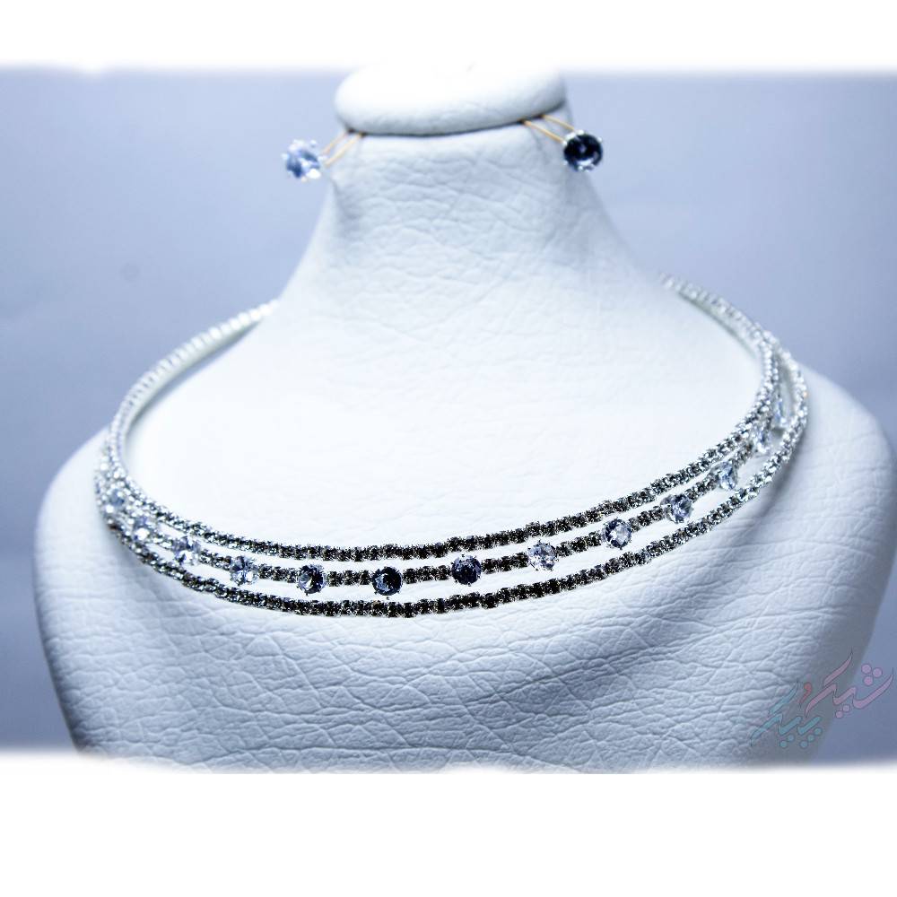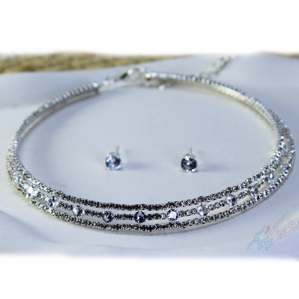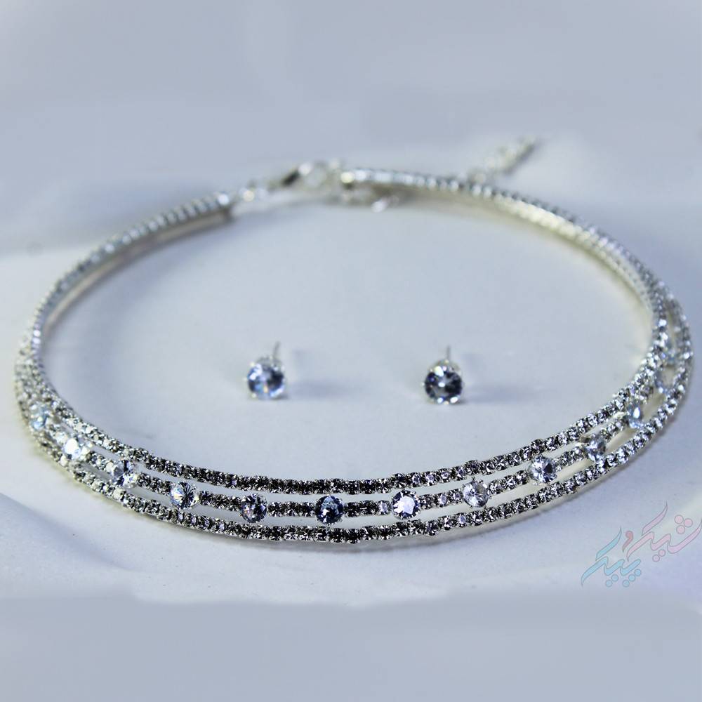 نیم ست گردنبند طوق و گوشواره فول نگین