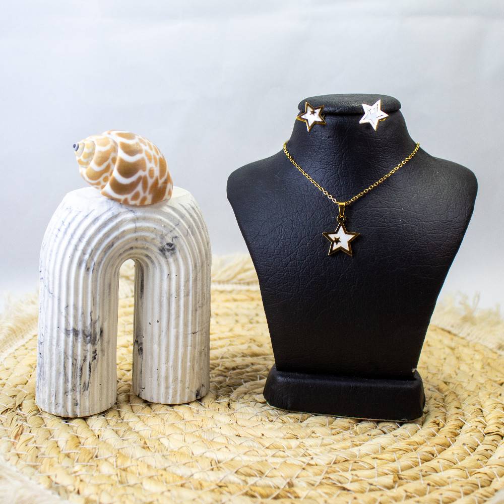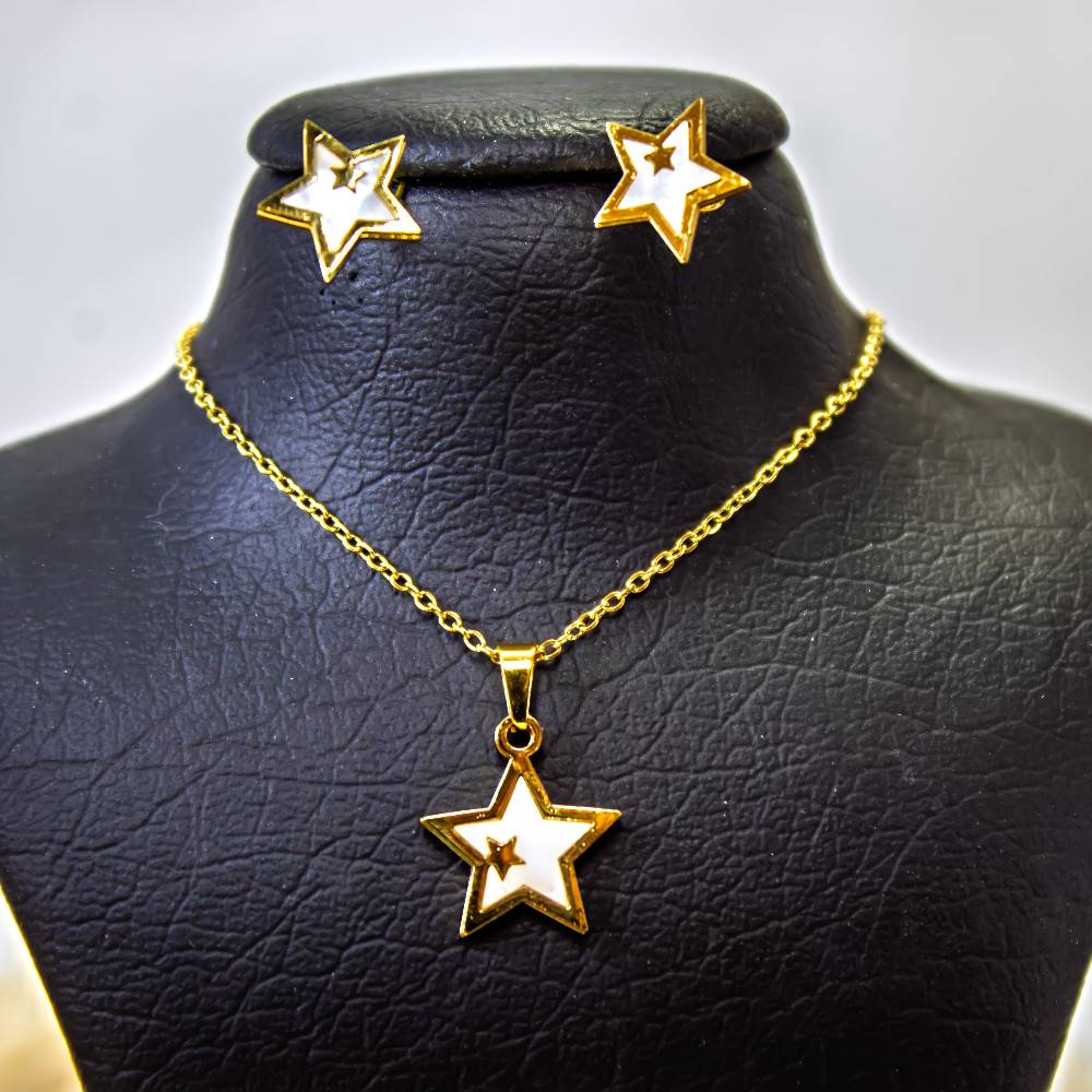 نیم ست گردنبند و گوشواره طلایی مدل ستاره صدفی