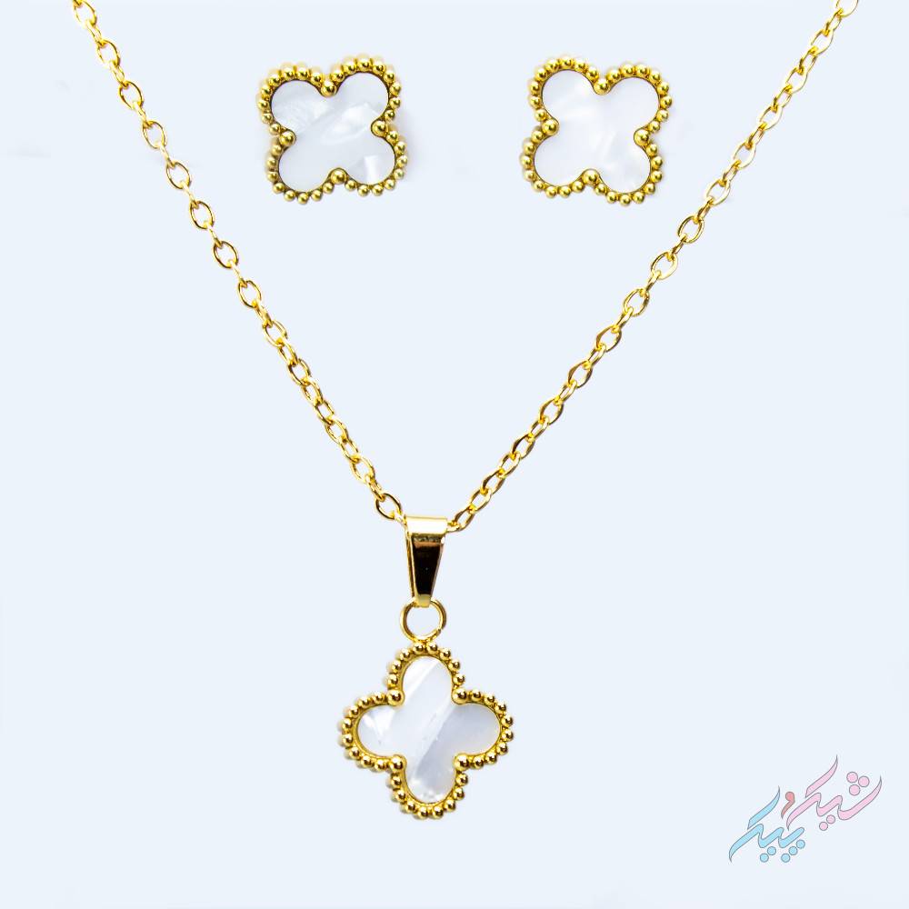 نیم ست طلایی گردنبند و گوشواره مدل ونکلیف