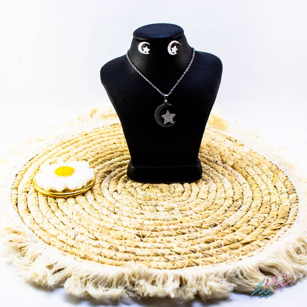 ✔ گردنبند با آویز ماه و ستاره و گوشوارههای ست هماهنگ