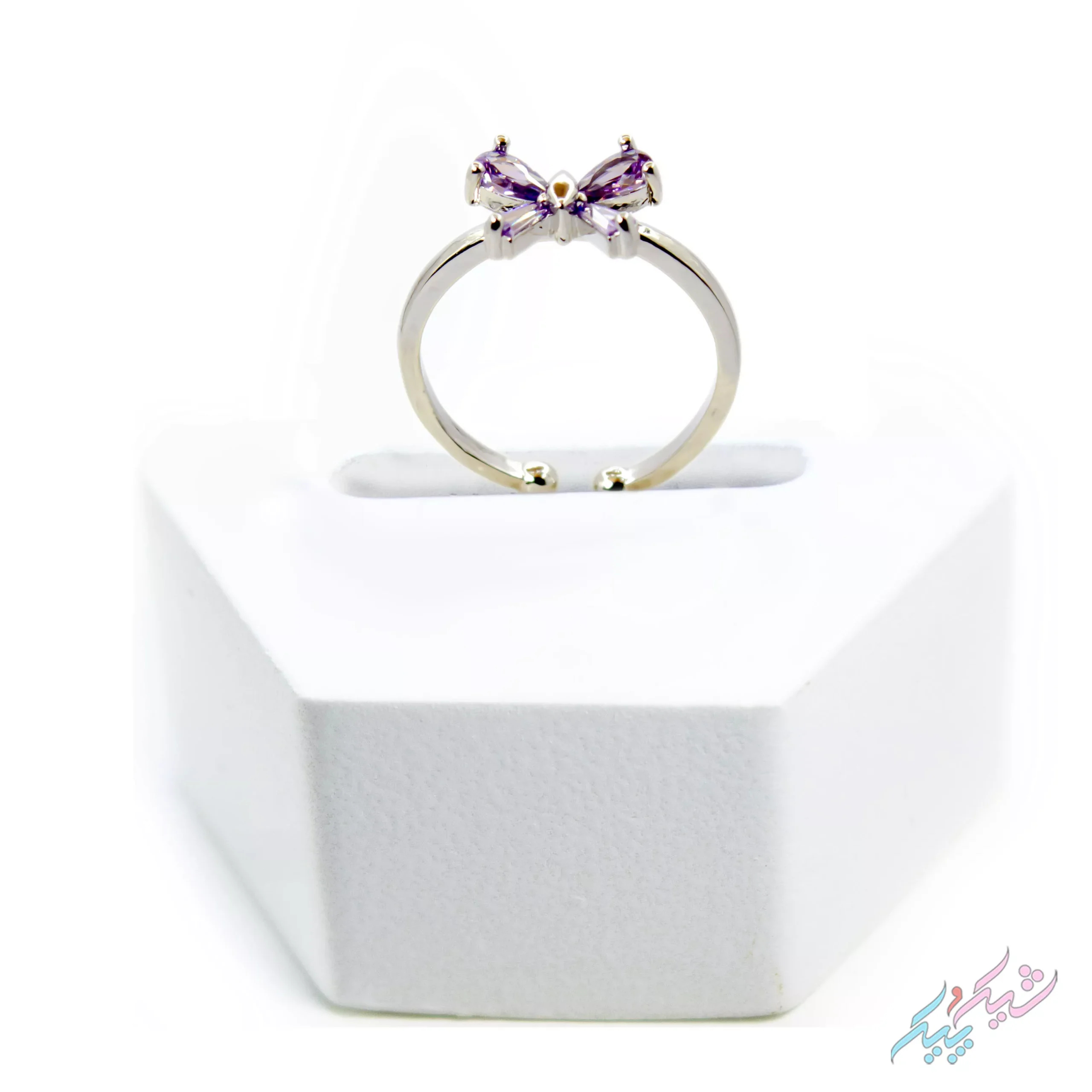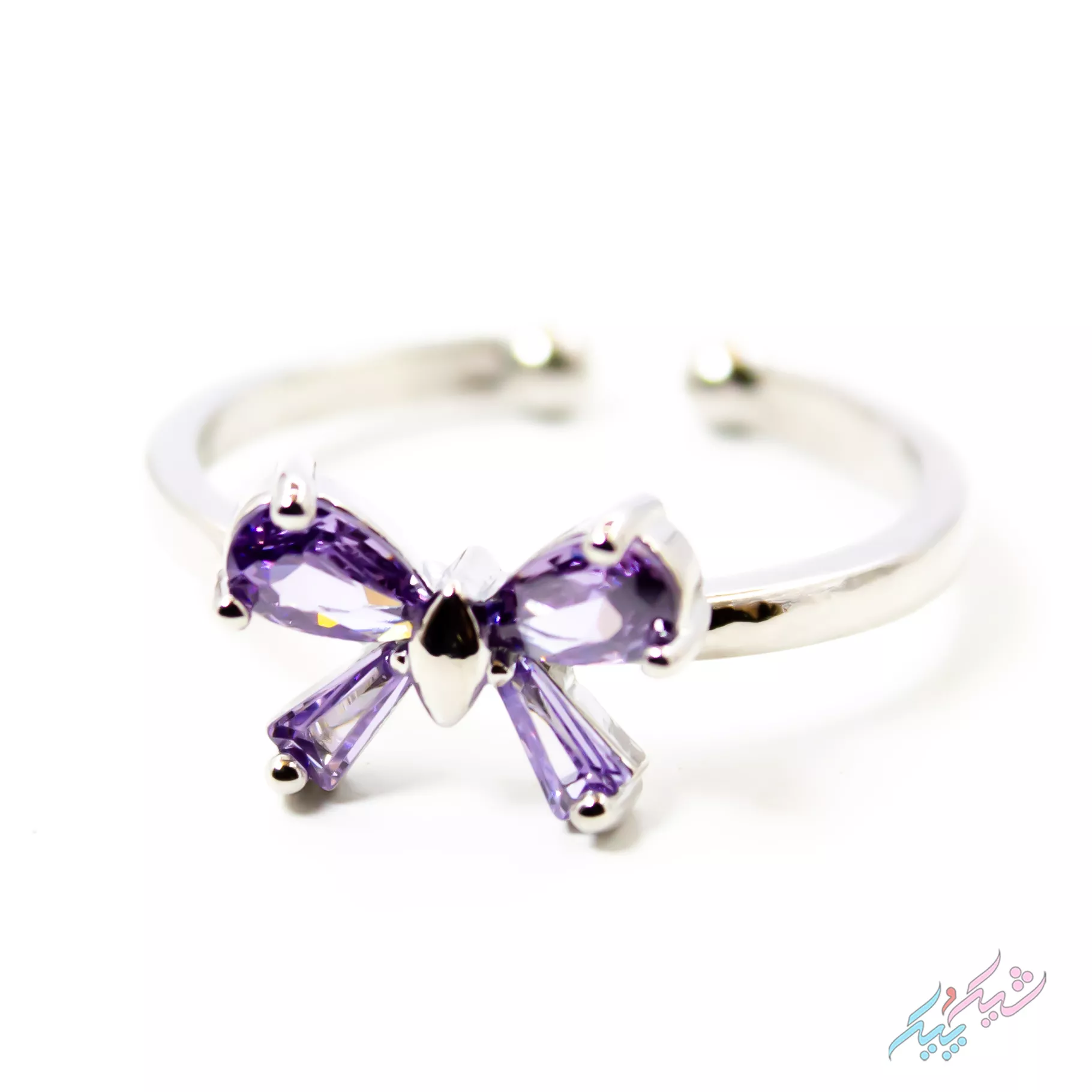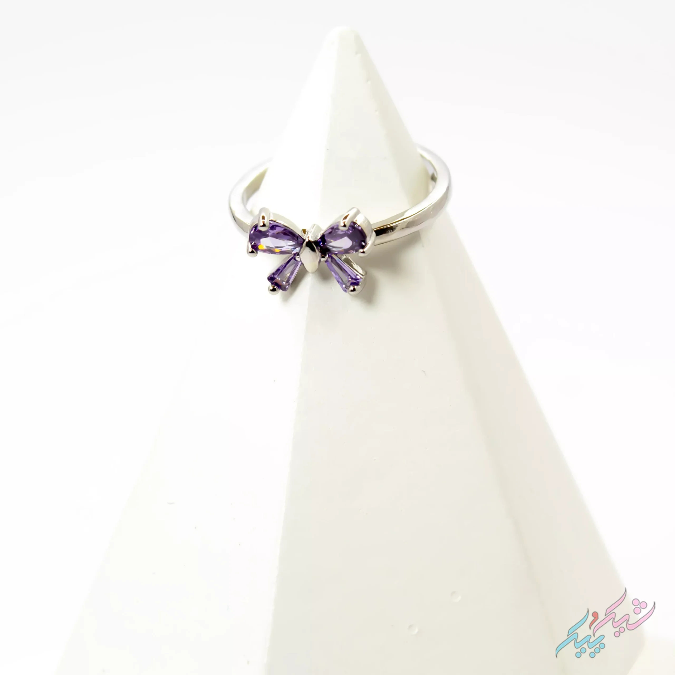 🎀 انگشتر پاپیون نگین دار نقرهای؛ دو رنگ سفید و بنفش نماد شیطنت و ظرافت دخترانه