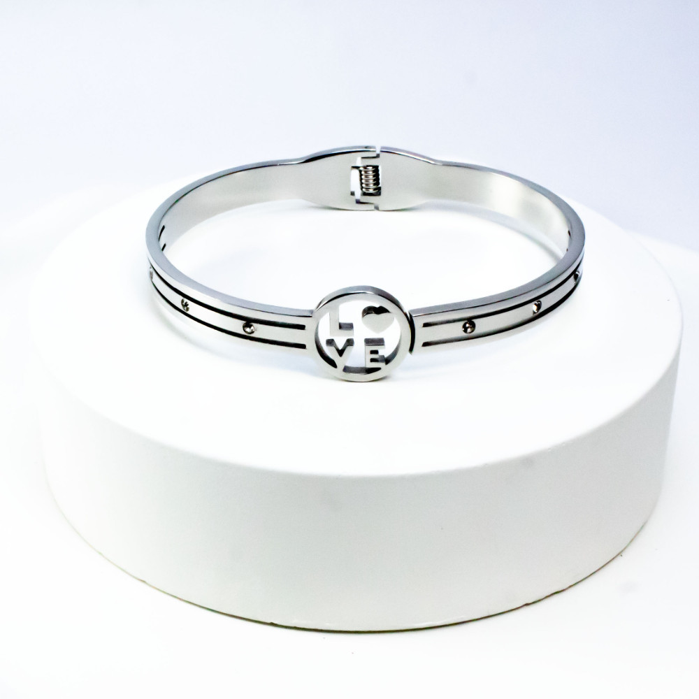 دستبند بنگل لاکچری نقرهای مدل LOVE با نگین
