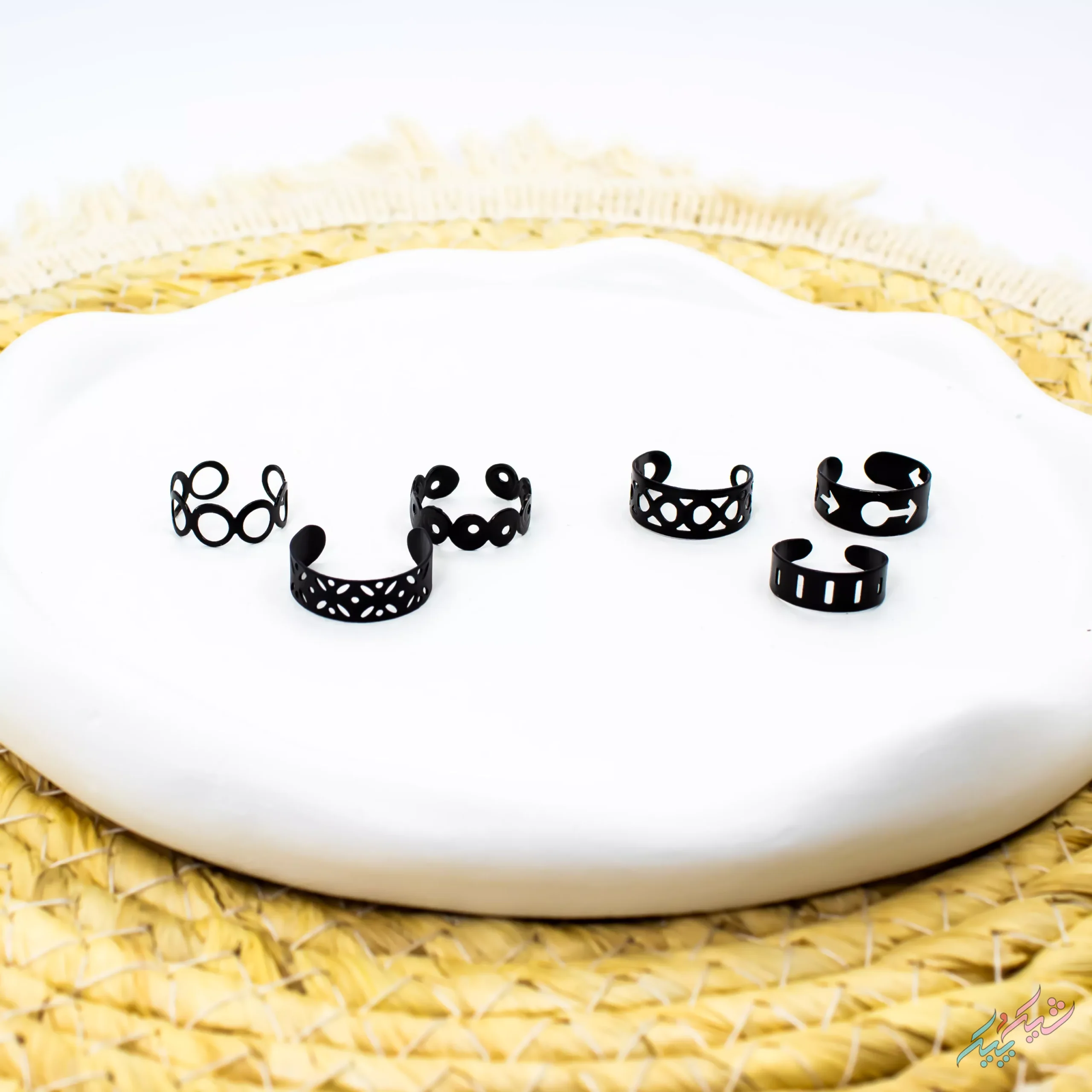 پک انگشتر و بند انگشتی بدل شش تایی فانتزی مشکی با طرحهای ترند