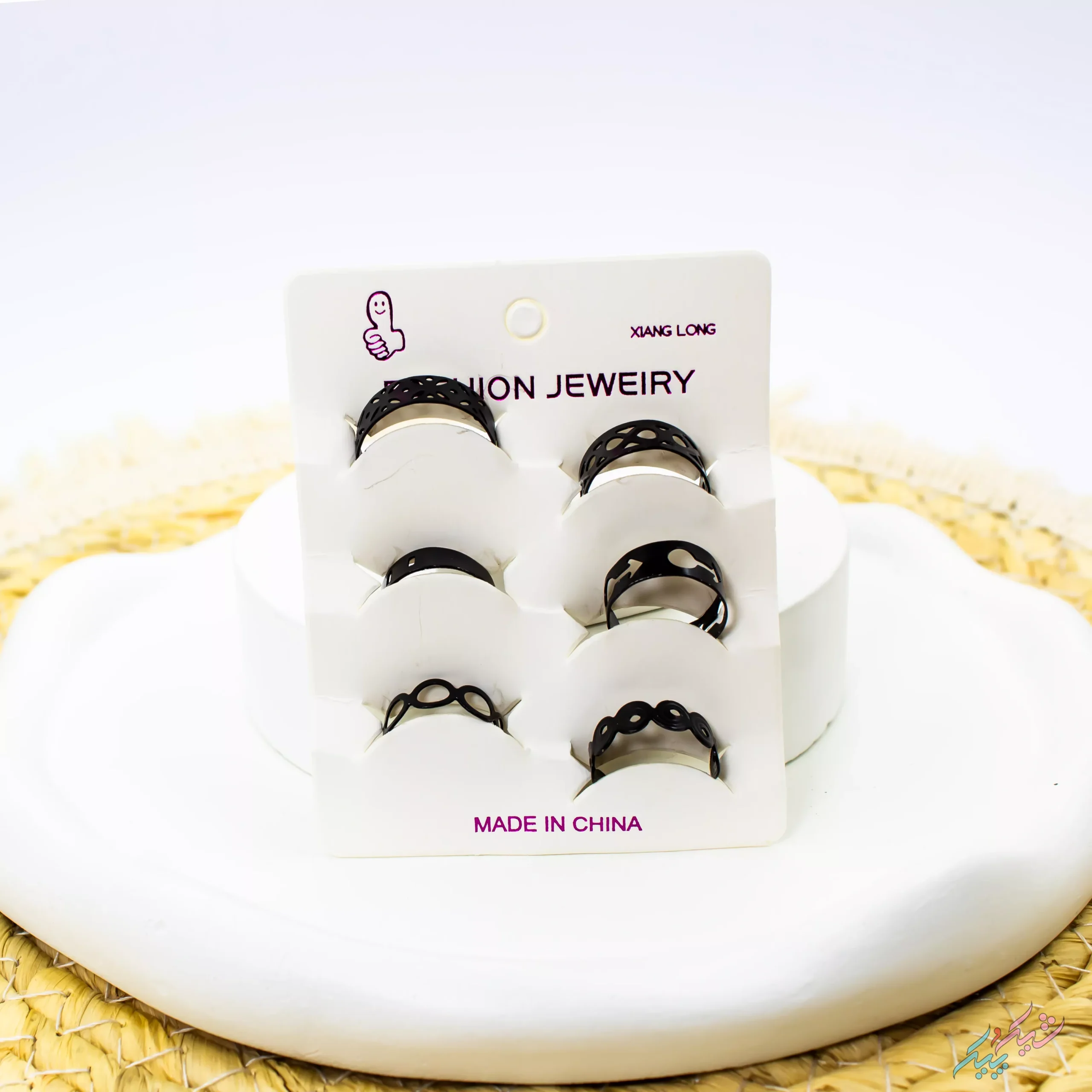 💍 پک انگشتر شش تایی فانتزی مشکی با طرحهای ترند