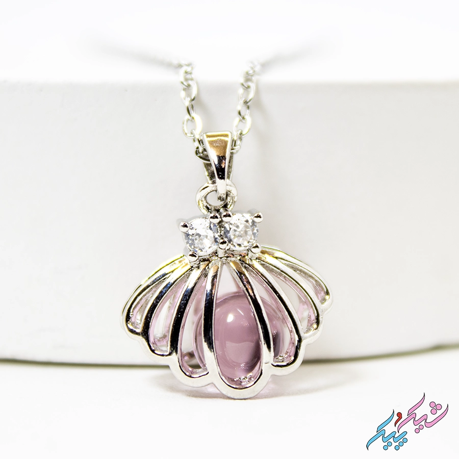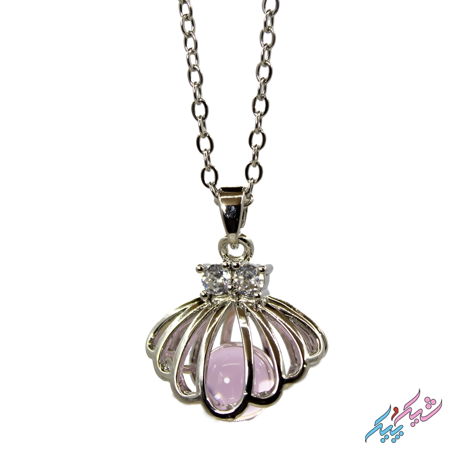 گردنبند طرح «صدف دریایی» با مروارید صورتی و نگین های درخشان