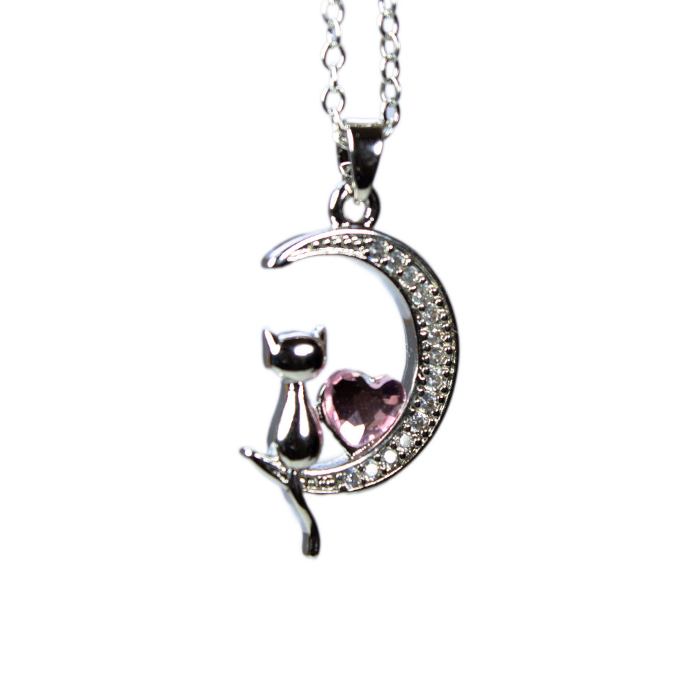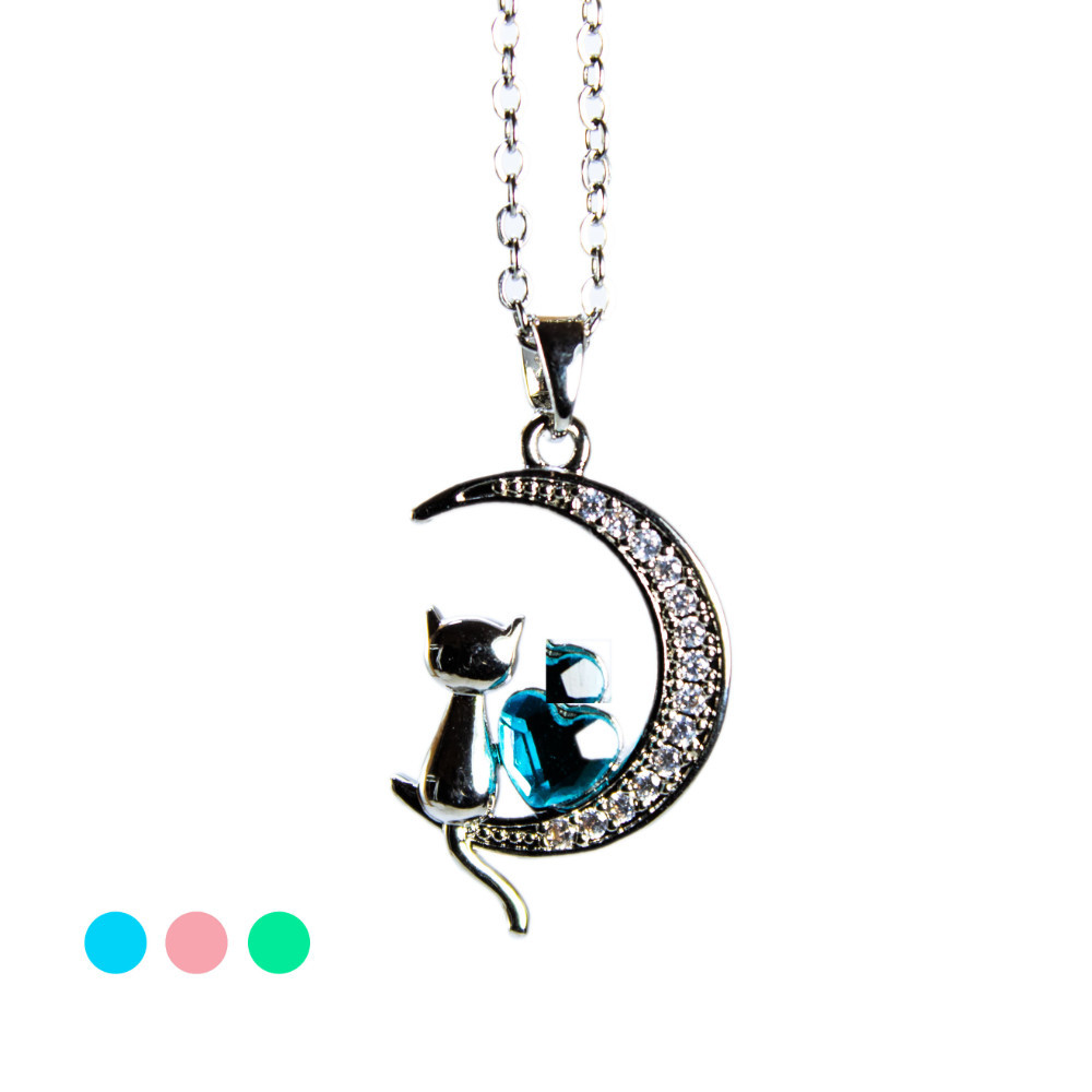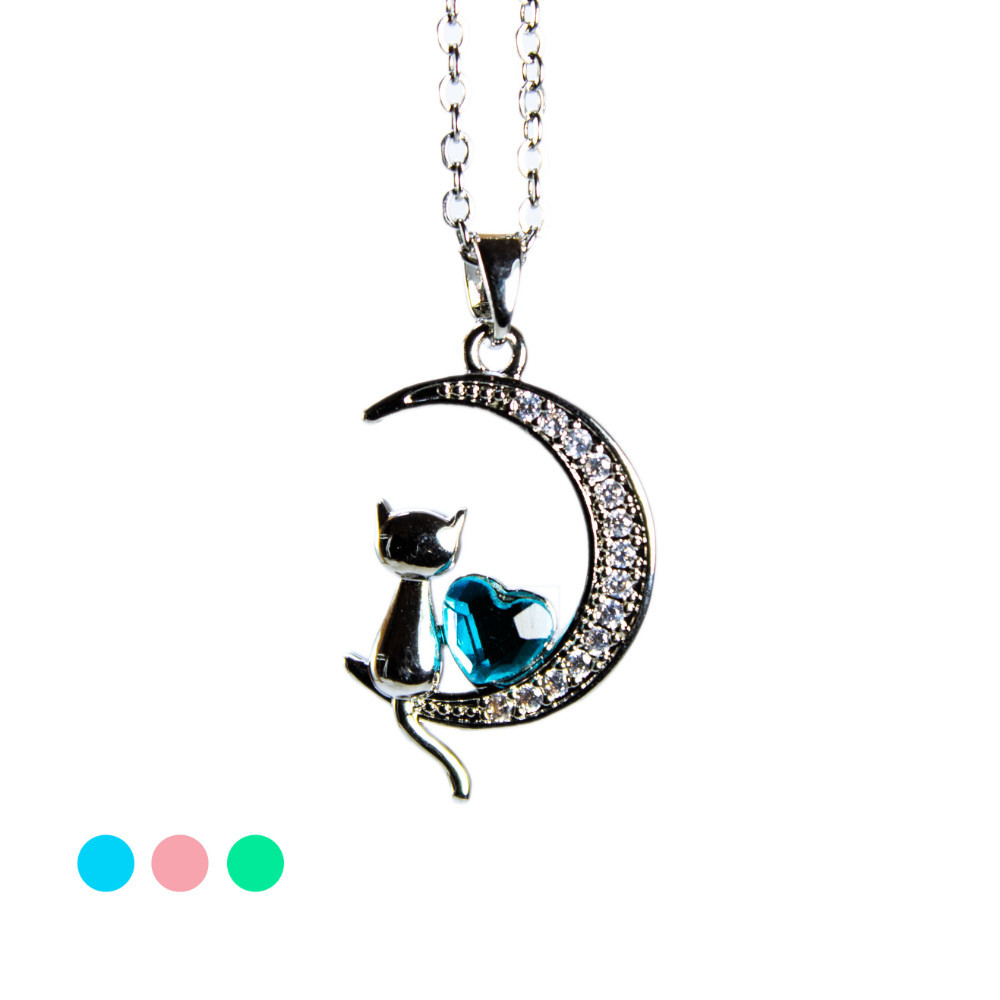 گردنبند پینترستی گربه در ماه با نگین قلبی رنگی