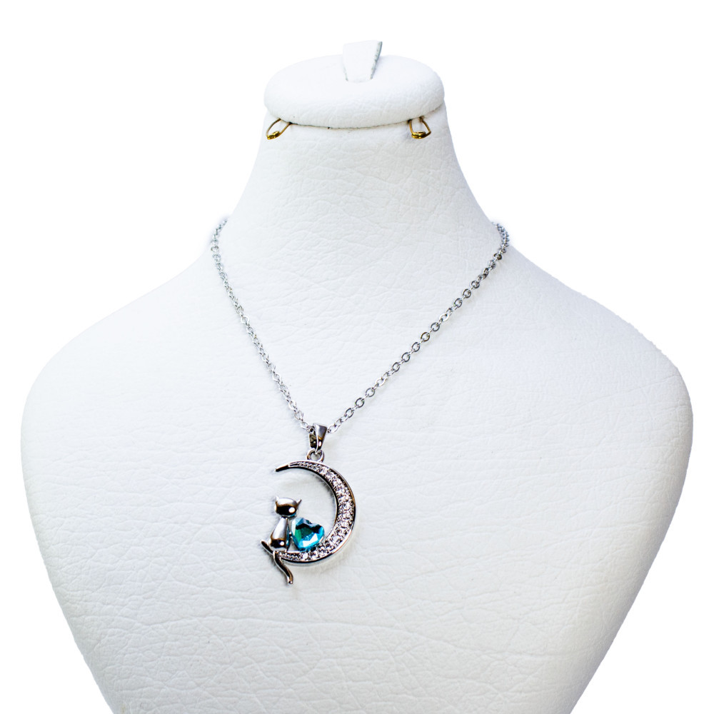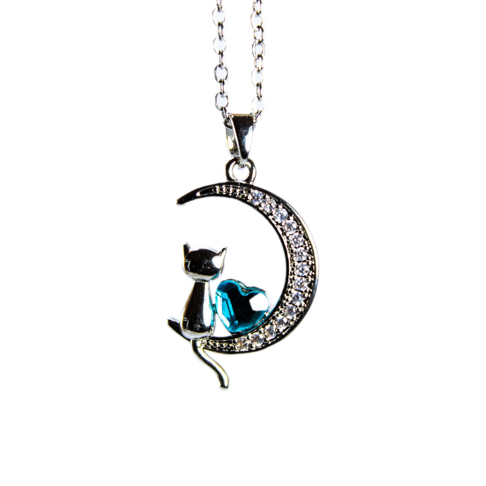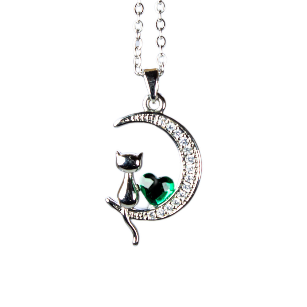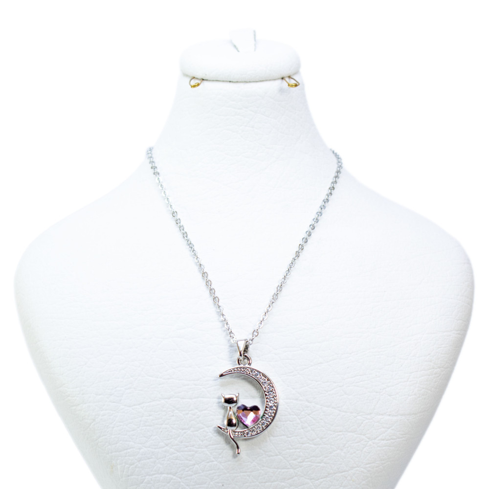 گردنبند پینترستی گربه در ماه با نگین قلبی رنگی