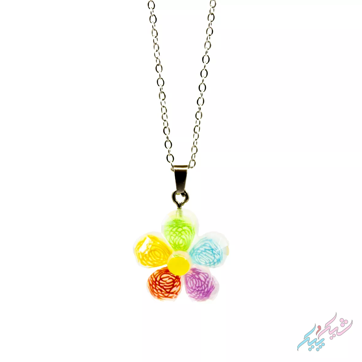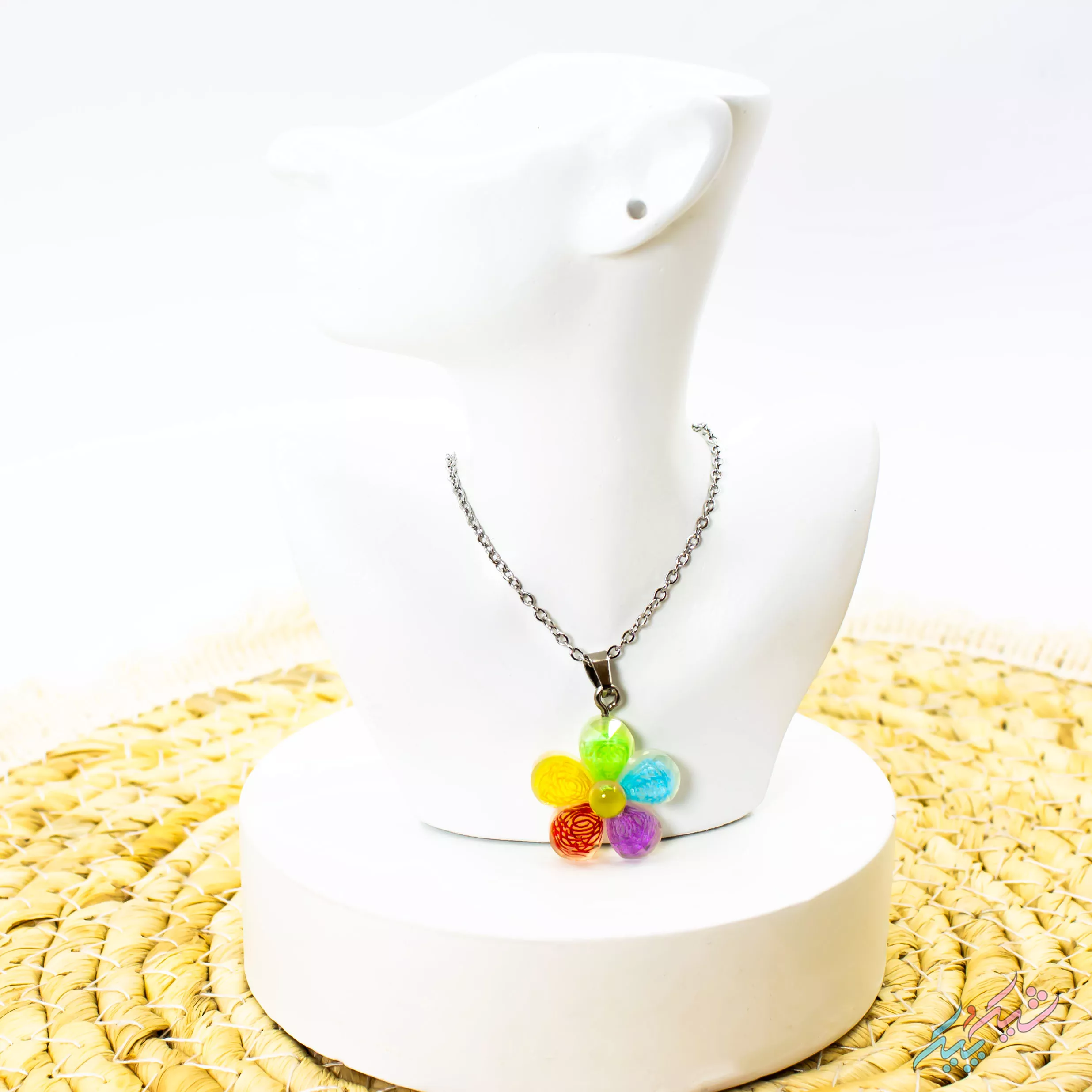 🌸 گردنبند فانتزی گل رنگین‌کمانی: رنگ و شادابی در یک طراحی خاص