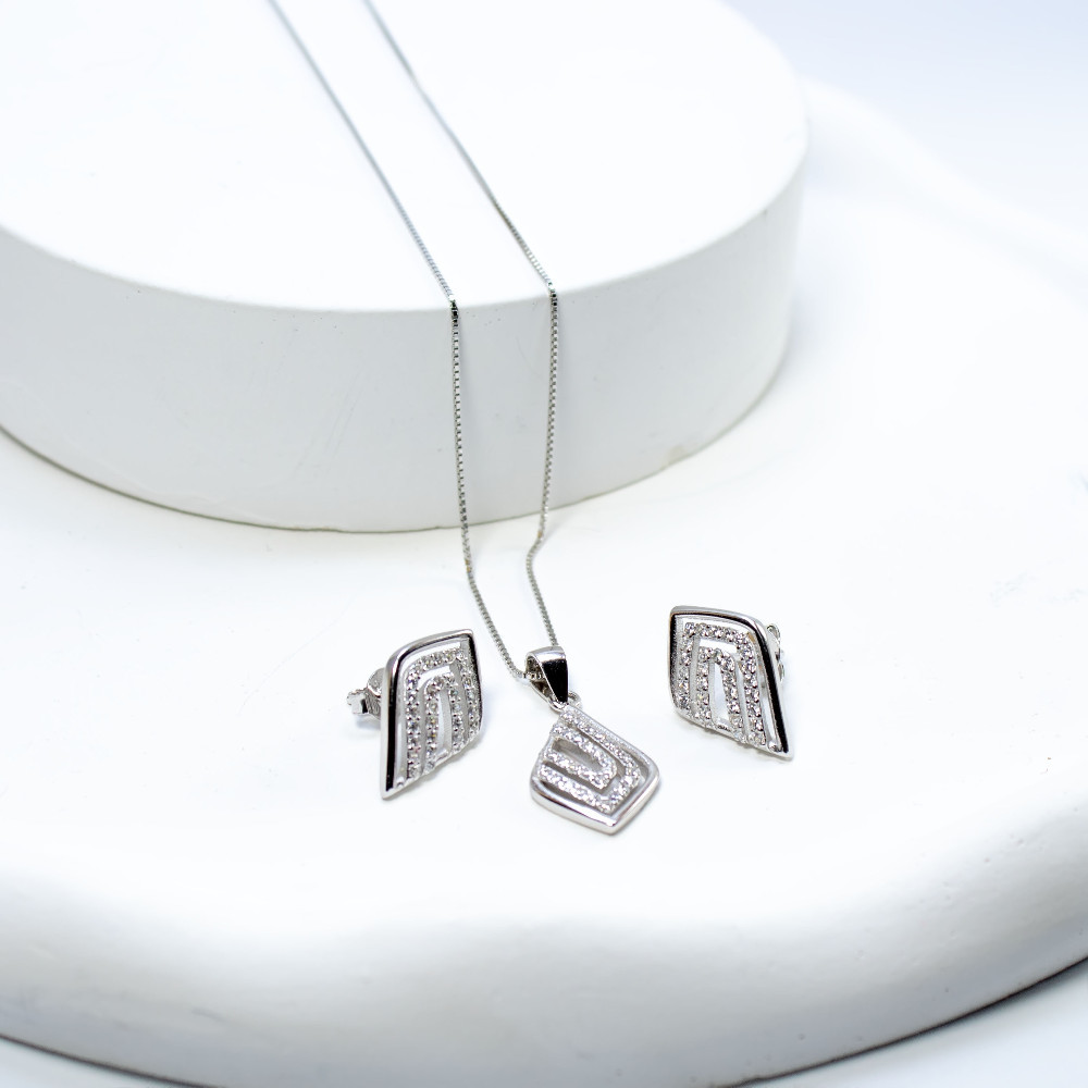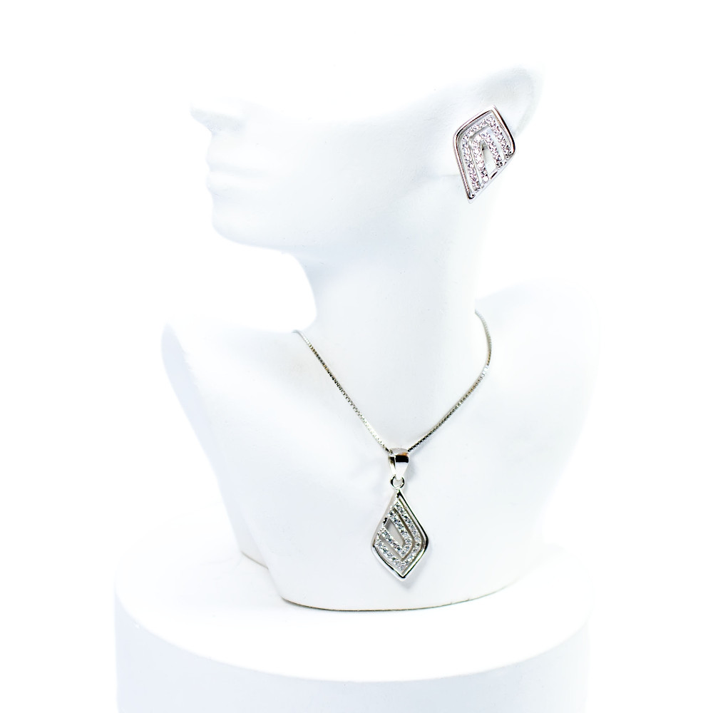 نیم ست نقره وارداتی 925 طرح لوزی درخشان – جلوهای از وقار و ظرافت