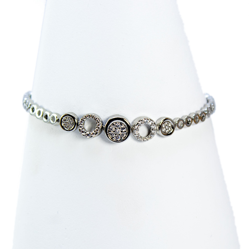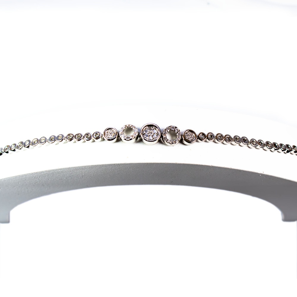 دستبند استیل مدل دایرهای نقرهای نگیندار دو قفله