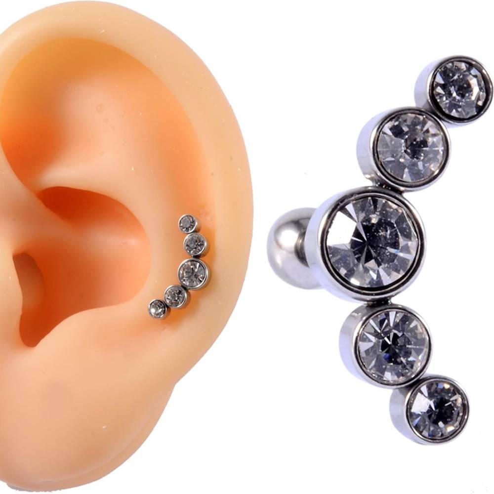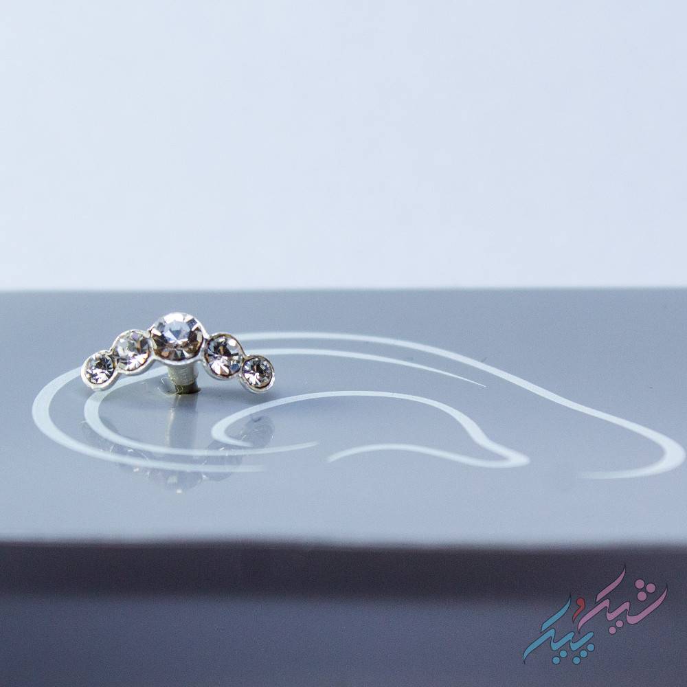 پیرسینگ هلالی گوش جواهری مدل پنج نگین میخ نقره