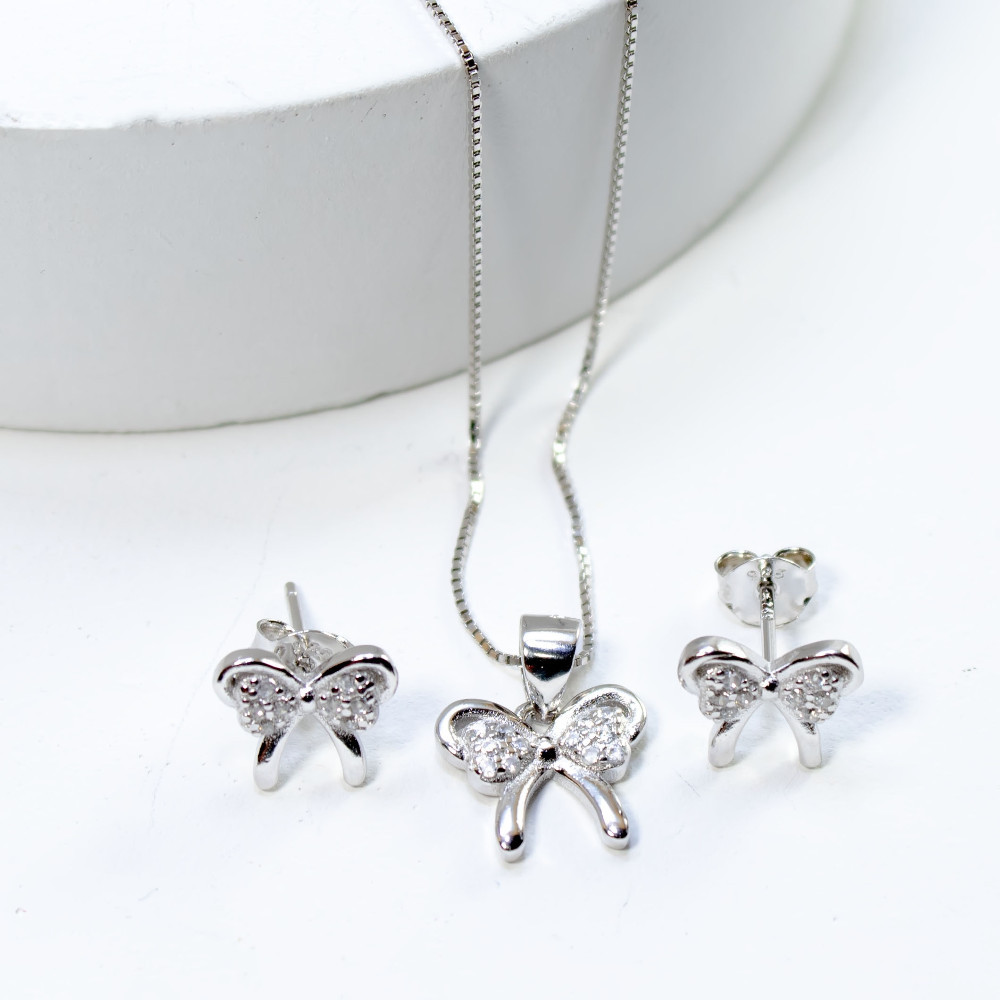 نیم ست نقره وارداتی 925 مدل پاپیون درخشان