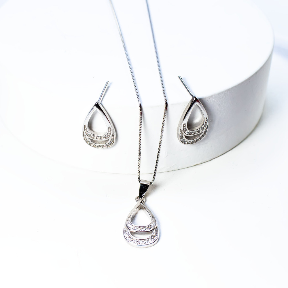 نیم ست نقره مدل اشک – قطرهای از زیبایی درخشان