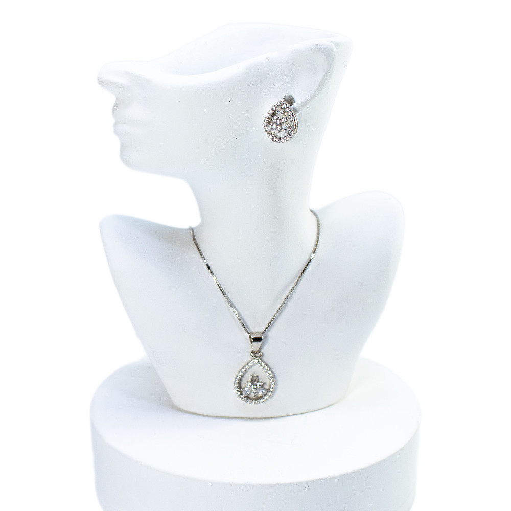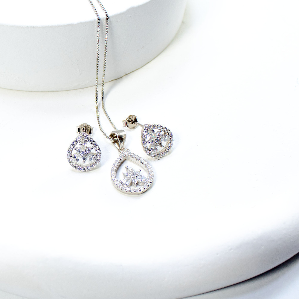 نیم ست نقره وارداتی 925 طرح اشک نگینی – درخشش ملایم و کلاسیک