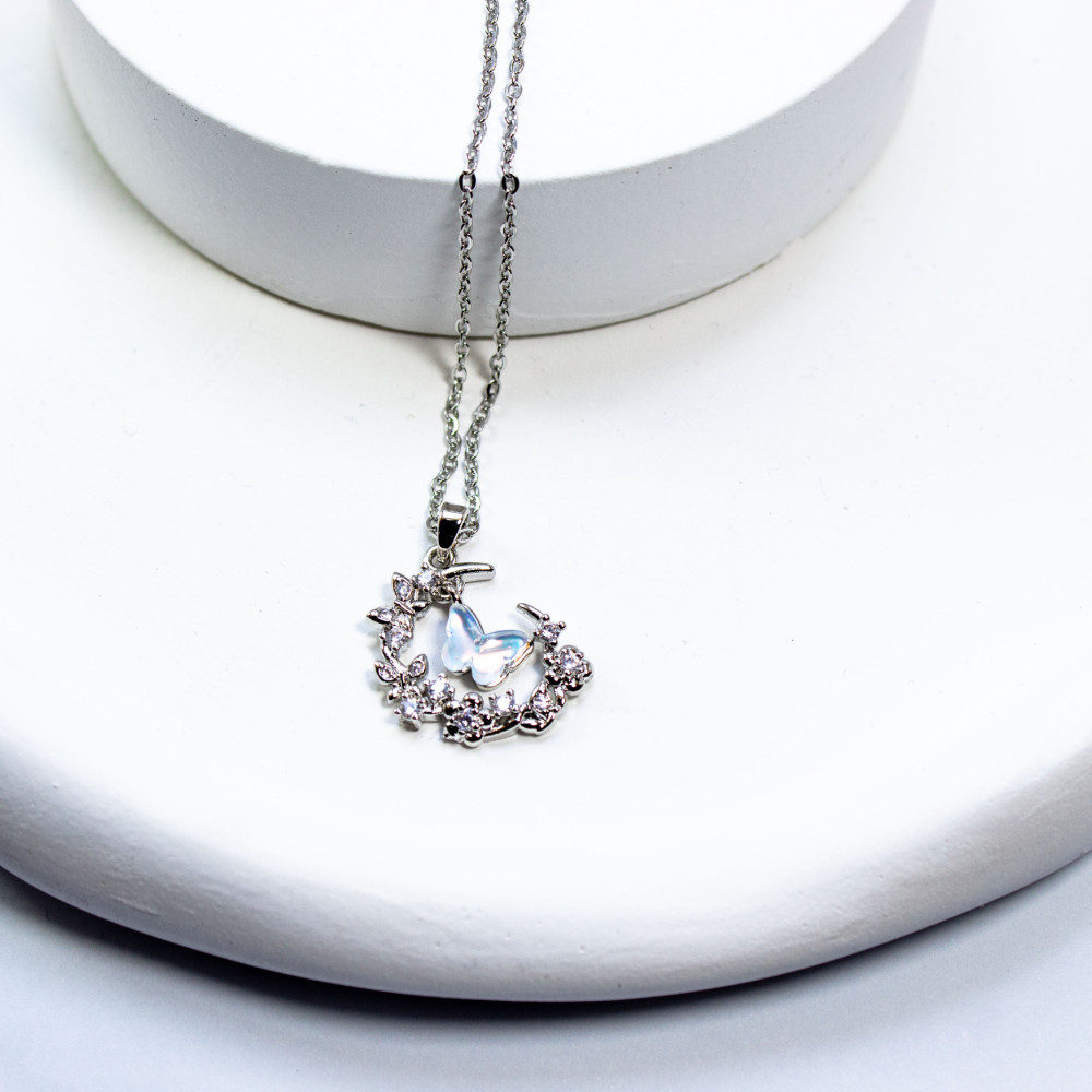 گردنبند پروانه هفت رنگ درخشان با طراحی گل و نگین