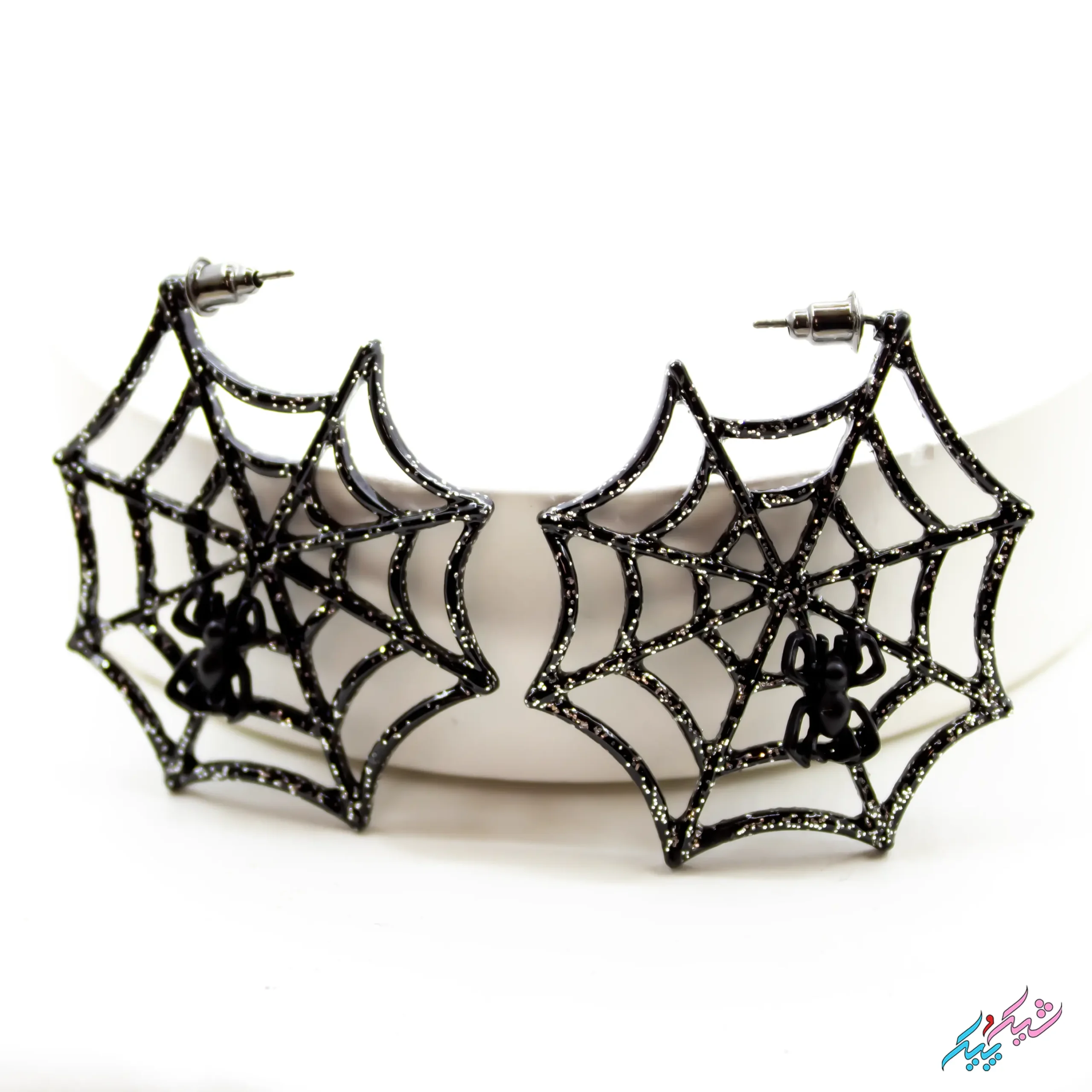گوشواره طرح تار عنکبوت با خود عنکبوت: اکسسوری فانتزی هالووین