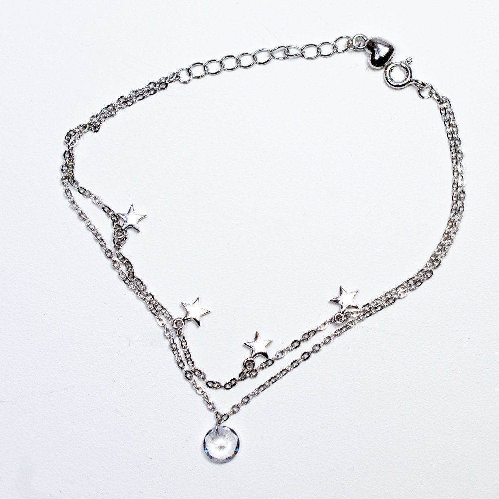 دستبند نقره وارداتی 925 مدل ستاره و الماس – طرح مینیمال و درخشان