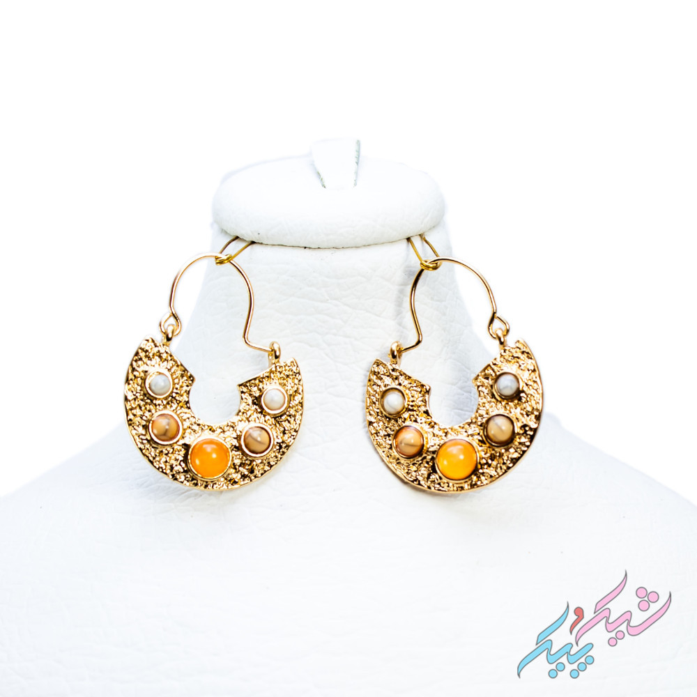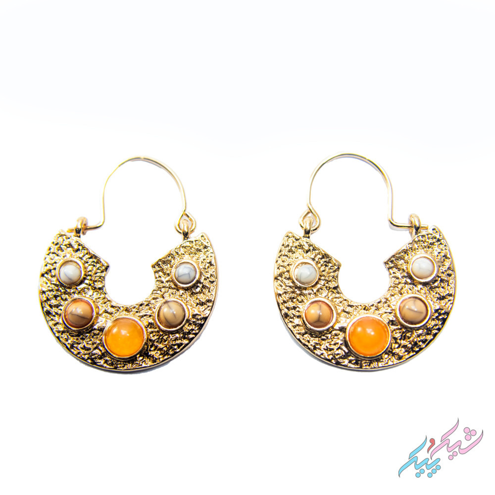 گوشواره حلقهای سنگدار با طراحی سنتی مدرن