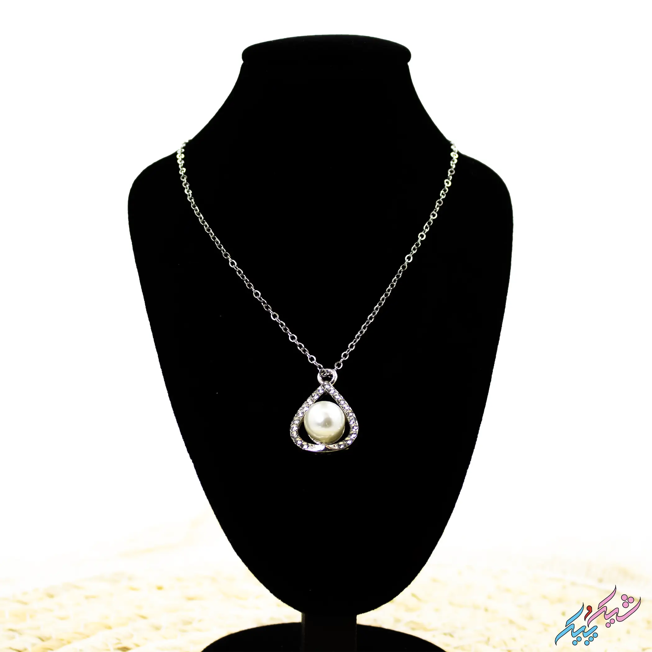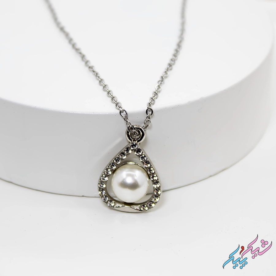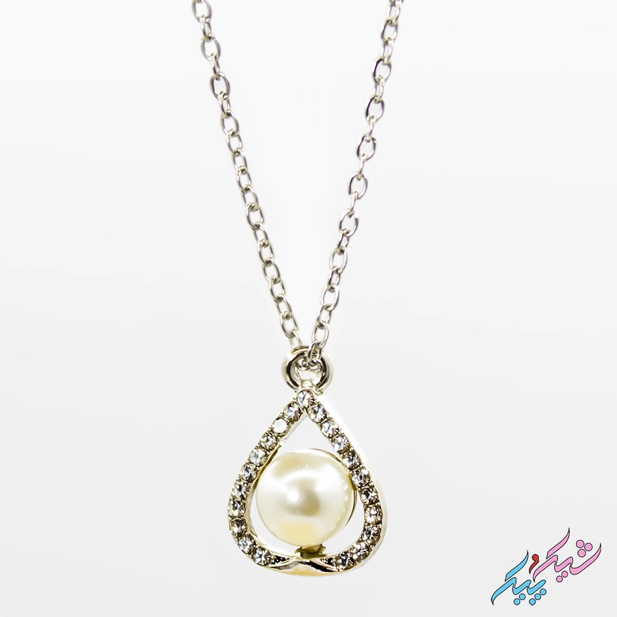 گردنبند مروارید طرح اشک با قاب نگیندار؛ درخشان و ظریف