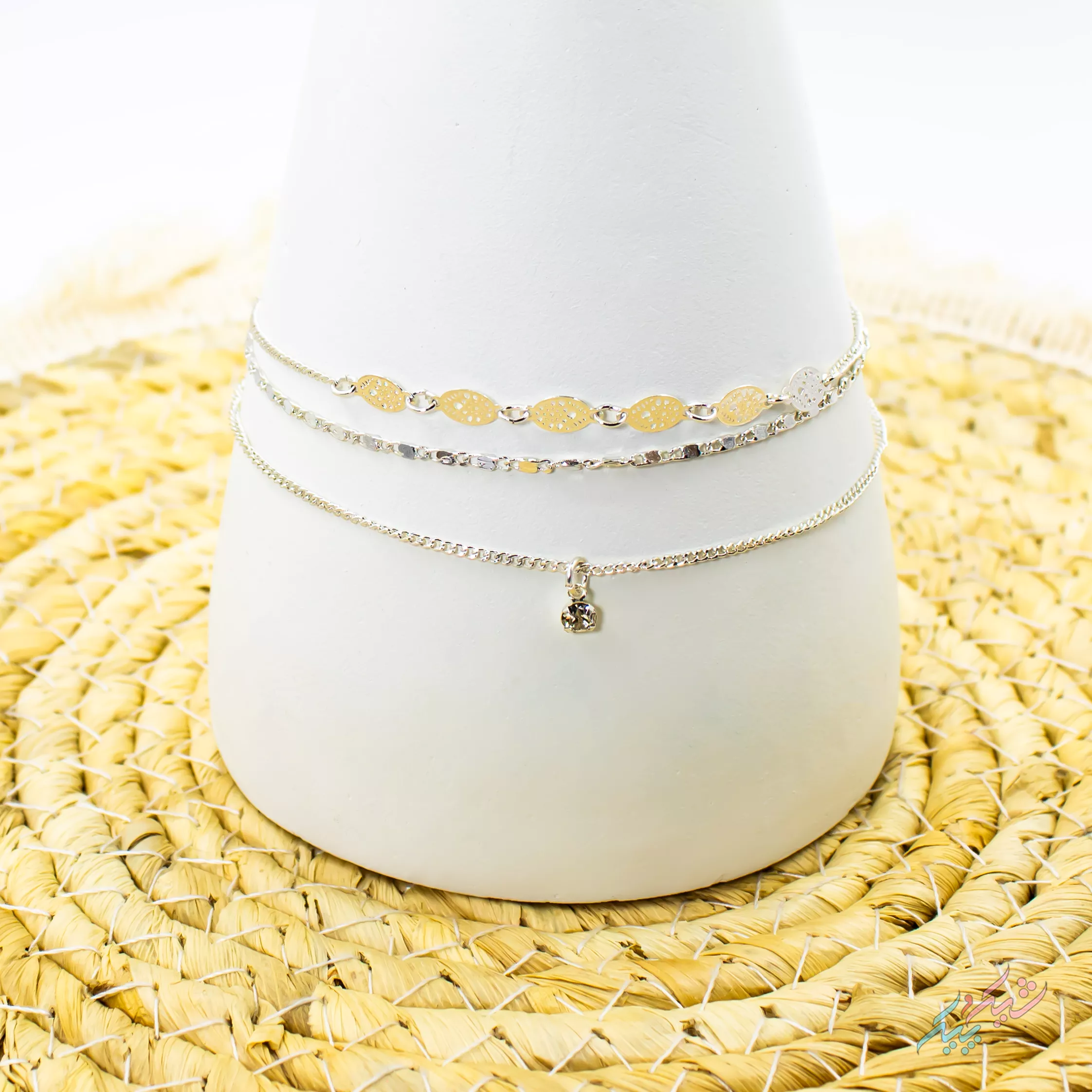 آیا به دنبال یک اکسسوری هستید که با یک حرکت، چندین جلوهی مختلف از ظرافت و مدرنیته را به مچ پای شما بیاورد؟ این پابند سه لایه نقرهای ترند انتخابی ایدهآل برای شماست! ✨ این پابند با ترکیب سه رشته مجزا اما هماهنگ، که هر کدام بافت و طراحی منحصر به فردی دارند، یک جلوهی مینیمال، لوکس و کاملاً ترند به استایل شما میبخشد. طراحی لایهای (Layered) این پابند، نشاندهنده توجه شما به جزئیات فشن است.