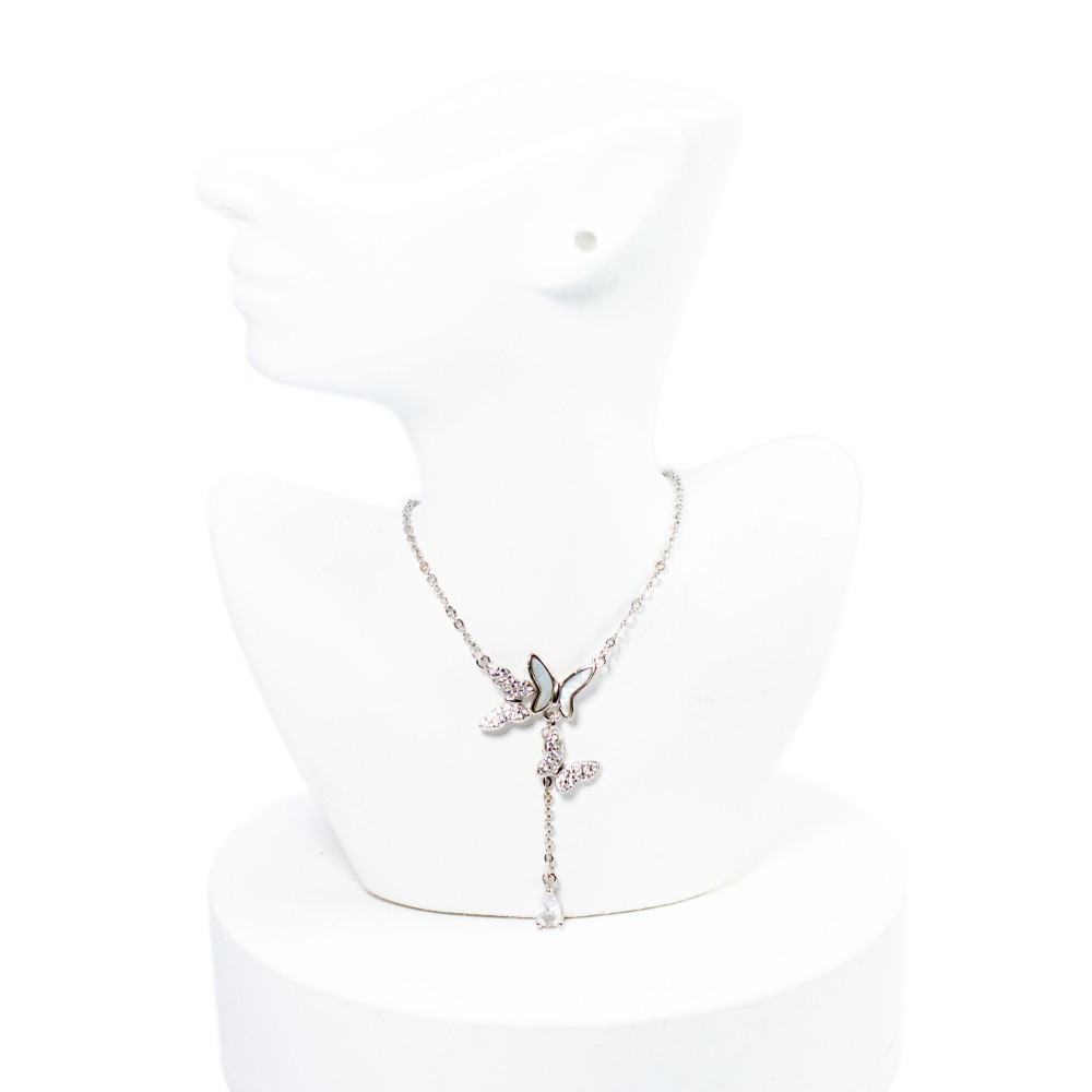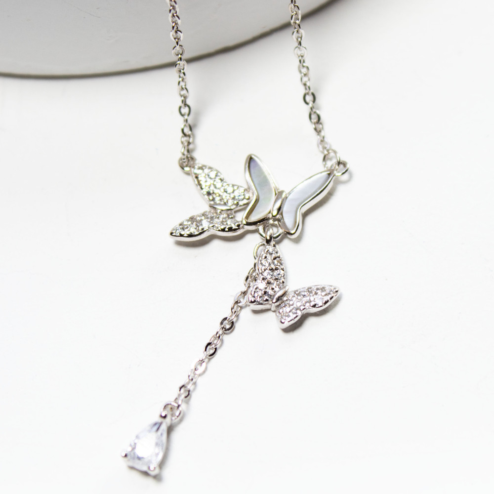 گردنبند نقره 925 پروانهای نگیندار سهتایی با آب رادیوم