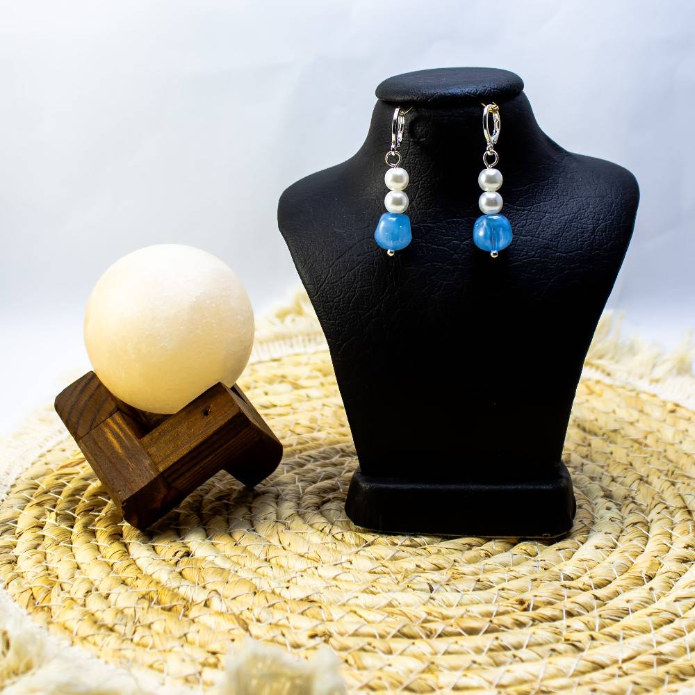 با طری زیبا و منحصر به فرد است که ترکیب رنگهای سفید و آبی در آن، جلوهای خاص و طبیعی به آن بخشیده است. این گوشوارهها طراحی ظریفی دارند و به راحتی با هر استایلی هماهنگ میشوند. مروارید سفید که نماد ظرافت و زیبایی است، با رنگ آبی آرامشبخش ترکیب شده تا یک محصول زیبا و در عین حال کاربردی را ارائه دهد.این گوشوارهها به راحتی میتوانند استایل روزانه شما را تکمیل کنند یا به شما کمک کنند در مناسبتهای خاص مانند مهمانیها یا جشنها برجستهتر به نظر برسید. طراحی آن به گونهای است که با انواع لباسها و جواهرات دیگر قابل ست کردن است.این گوشوارهها همچنین گزینهای عالی برای هدیه دادن به عزیزان به ویژه در مناسبتهایی مانند تولد، سالگرد یا روز مادر هستند.